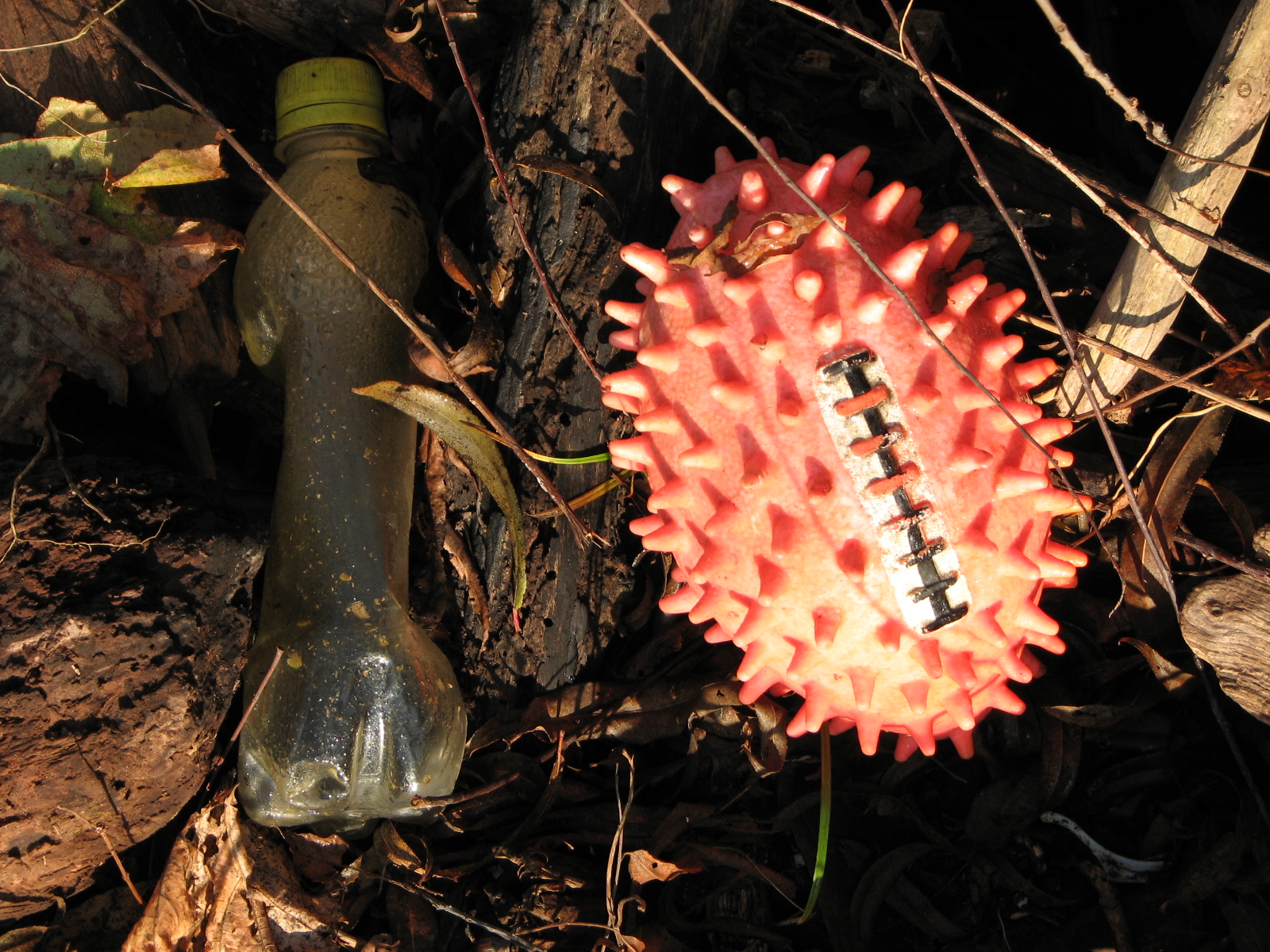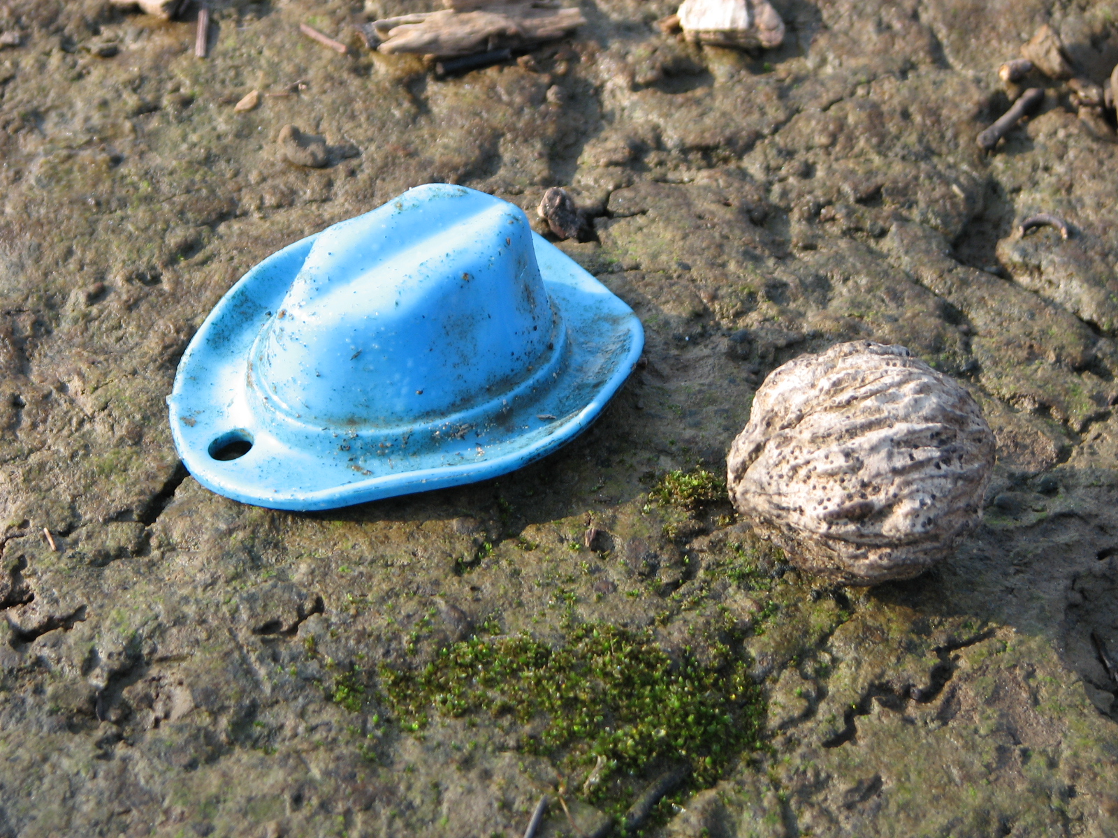 Lastly, the nest featured with the Fleur-de-lis Dovelette is in fact a genuine bird nest. I found it in the branches of a downed tree. I have no idea which species created it. I have seen within the park, the nest of a Northern Oriole that used cast-off fishing monofilament in its construction. I do, however, think I located a source for the plastic fibers. Near the discovered nest, a large barge rope was slowly unraveling and its threads look identical to the ones in the nest I came across.