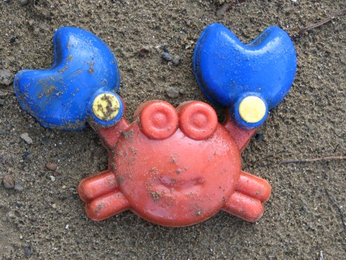 Here’s a close-up image of its head, bill, and pacifier it found by the river.