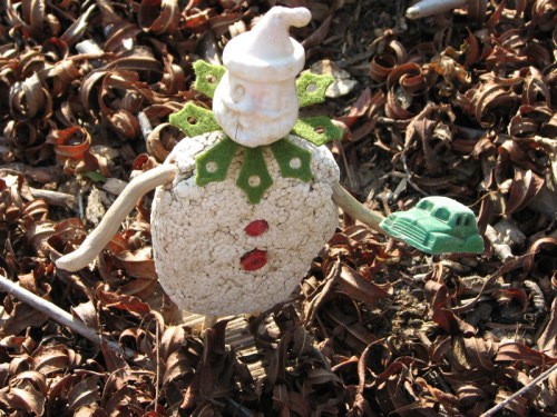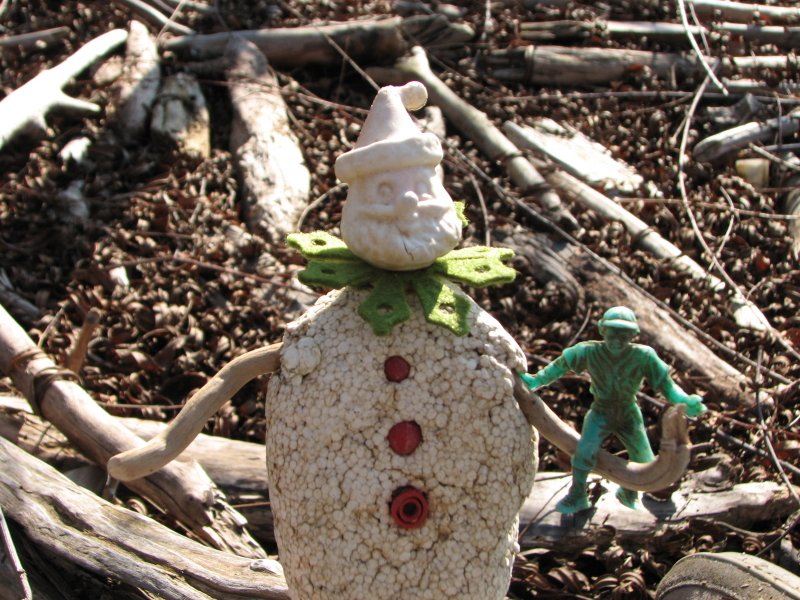 I watched as the two Styro-figures slowly walked to an area that was slightly higher in elevation. Pot Belly lifted Lorraine onto an especially large log and that was where I left them. I may or may not see them again and I suddenly felt sad. I was the only human being around this day to witness this event.