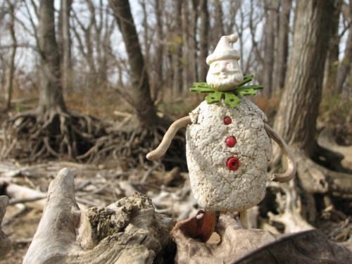 Through the leafless trees, I could see the little area that I had made my temporary home for my flights of imagination this year. I’m going to miss sitting on a familiar log with all this “potential” gathered around me. To all things there is a season and I know that the river will soon rearrange this spot as though I was never here. All the materials I gathered will move along and perhaps I will recover some of it a little further down river. Over time, the waters will deposit other materials and I will gather those too and make what I can make in this dynamic location. I gave my studio site another good look and selected a few nice driftwood branches and walked away. I can’t wait to see what happens next.