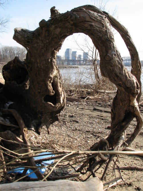 Final image, I love the way the cottonwood trees and their arching trunks and roots present themselves along this stretch of the park. The view through the hole is of Louisville’s skyline. Can’t wait to see what I find next!