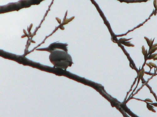 Like little twittering machines, a male and two female Belted Kingfishers were chasing each other across the sky. I watched them for over half an hour and hoped that one of them would perch in a tree near me. Alas, this was the best image from that moment. With its low profile, out-sized bill, and crested head, the Belted Kingfisher’s silhouette is distinctive. Someday, I hope to stumble upon their nest built into the side of the riverbank. I’ll prepare my mind for that moment and let’s see if chance intervenes! I did spot an Eastern Phoebe which is an early migrant. As the warmth and light speeds up the production of tree leaves, we can expect the arrival of the birds we share with Central and South America. Their timing is exquisite and seems to coincide with the many small cut-worm caterpillars that will chew their way through the foliage of the canopy.