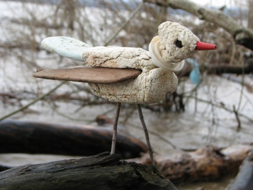 Echo, thanks for keeping me on your map. The river is vital not only because of the life quality of the water, but it’s also a metaphor for the journey we all take. All the materials I use were found on location and brought here by the river. I try not to be too judgemental, but it creeps in. Most of what I make out here stays out here and gets taken, destroyed, or falls apart. I do keep some of the better pieces for exhibits and art auction donations. I do have a gallery that represents my work. Interestingly, I make the objects to help me create images and the physical materials are only a part of the story. I started this blog about a year a go to have an outlet for these images and the thousands of words they represent.