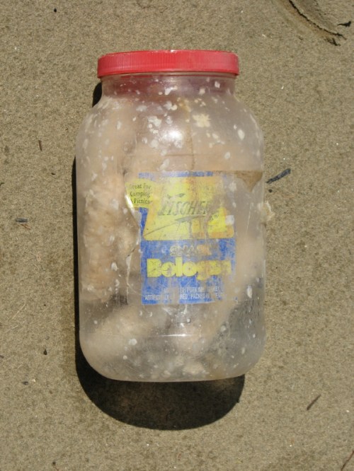It’s a very large jar of bologna. The contents have more than settled, in fact they have decayed to the point of becoming cream of bologna. I know, this is completely disgusting, but bear with me for the real point of the story follows this discovery. It was a short distance from this jar that we encountered another remarkable member of the Genus Polystyrenus.