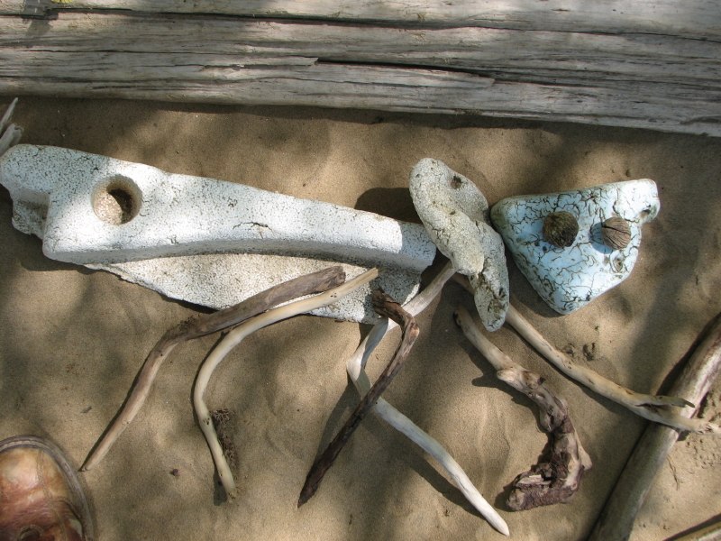 As a kid, I fell in love with one particular story that appeared in an old Natural Geographic entitled “Giant Insects of the Amazon”. Its author, Paul Zahl must have had the best job in the world to be able to travel to exotic places to study rare and unusual animals. I suppose, I’m doing something similar, but I’m not traveling far from home and making my own giants. Here’s the last picture of how I began the latest Polystyrenus receiving inspiration from the materials I find on location. Although I didn’t use all the stuff here…it provided a template of sorts.