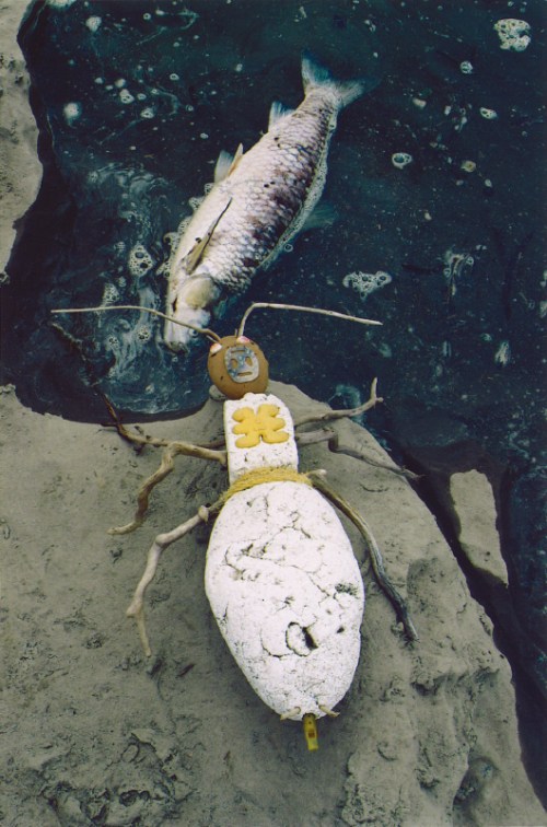 Dodging snakes and collecting washed up cigarette lighters with my friend Jeff was not the only action we had on this excursion to the Falls of the Ohio. By now, I should not be surprised by what turns up at this remarkable location…because it happens with such regularity. For me, the thrill of discovery has become addictive and interwoven into my creative process. Recalling events, I believe it was my friend Jeff who stumbled upon this revolting artifact and so I will begin this story here.