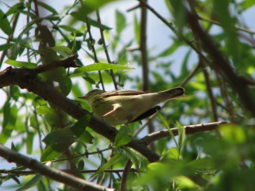 This bird atop a willow tree is a bit of a head scratcher for me. I like that I was able to get such a relatively clear shot among the foliage, but what species of bird is this? When I first took the photo, I thought I was photographing one of the seasonal vireos. However, there is a suggestion of light-colored wing bars and perhaps a slightly streaked breast too which is an unusual combination. That’s what I like about bird watching…it can be challenging even when you think you have a good image.