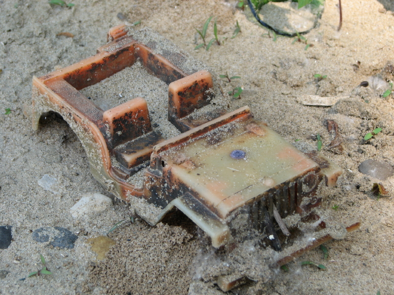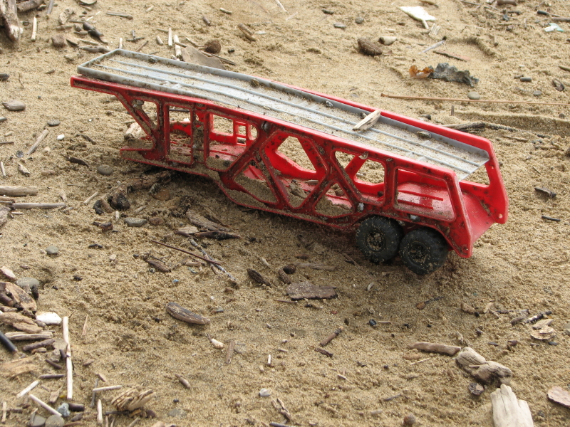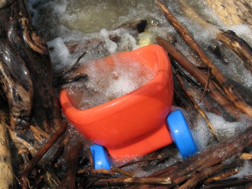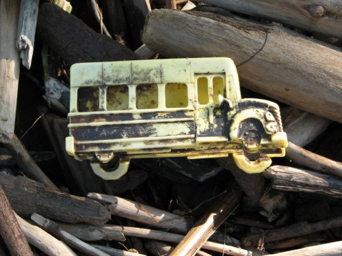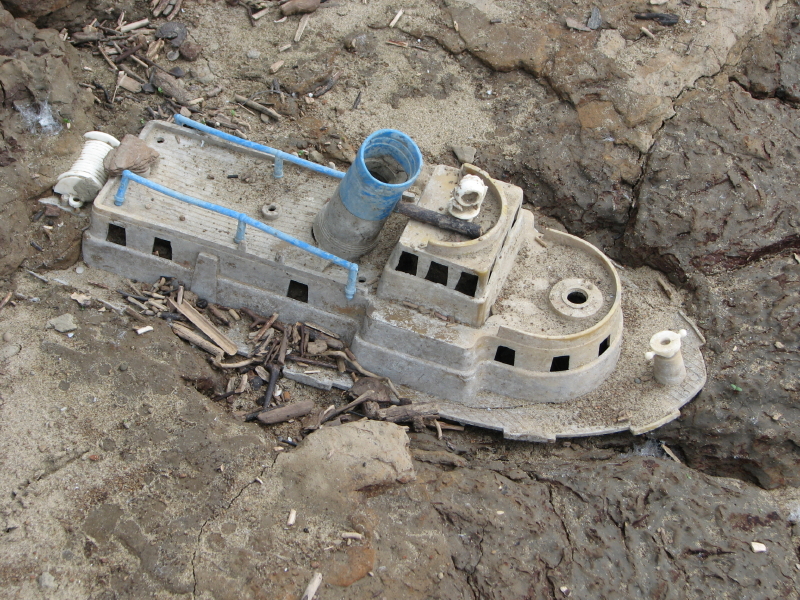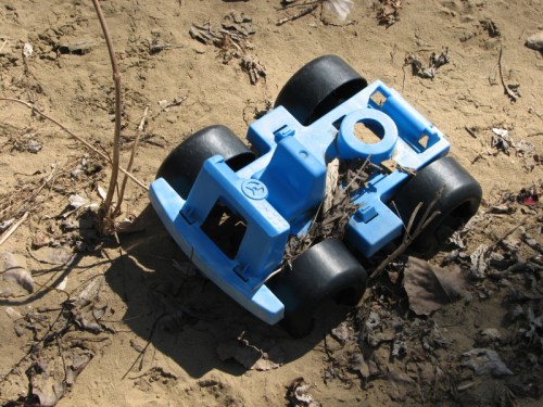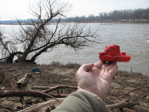 Here’s a collection of found objects that I photographed on location at the Falls of the Ohio State Park. All form a theme centered around transportation in the form of mostly discarded toys. I found all this stuff by the side of the river during the past year. Since the theme is obvious, I’ll just let the photos speak for themselves. Let’s start with another boat. It’s not the “Titanic” or the wreck of the ” Edmund Fitzgerald” but it bore witness to forces in nature larger than itself.