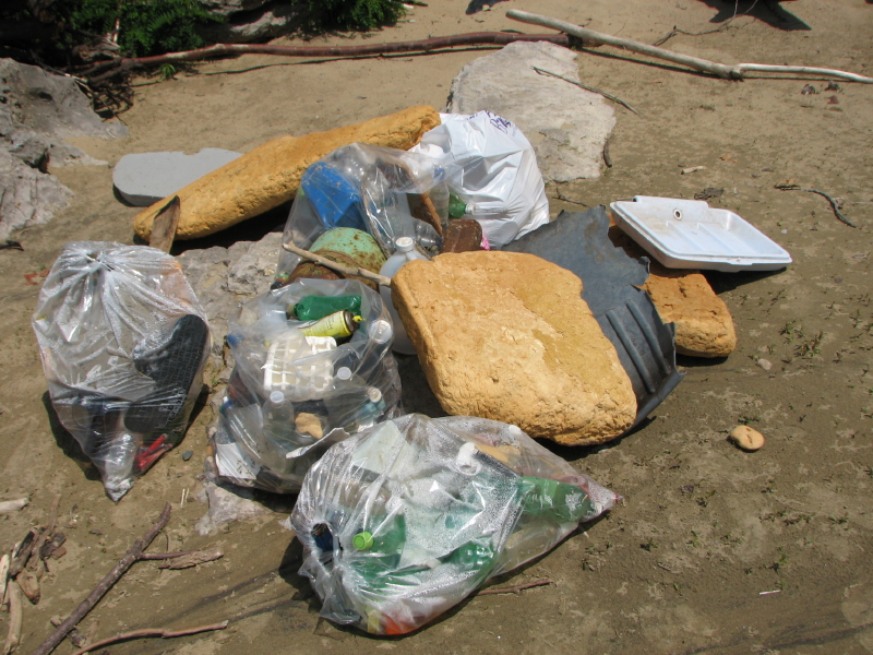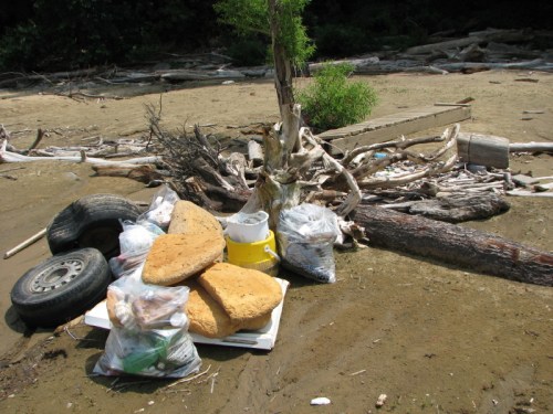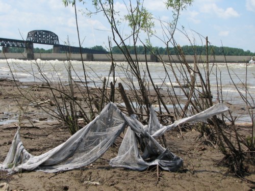 A group of volunteers did a river sweep clean-up last week at the Falls of the Ohio. Our June has been brutally hot and I can see how trying to clean up the park would be a daunting task…there’s just so much that needs picking up. I did document some of their efforts which I now present to you. I suspect that most of this stuff is now landfill bound.