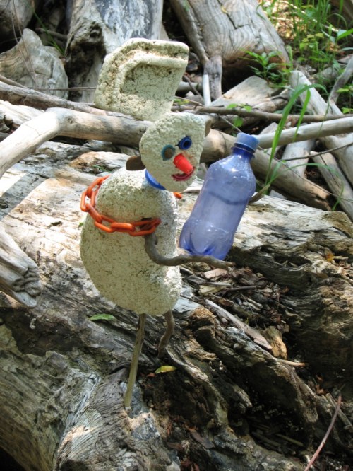The figure accompanying me isn’t very large, but he’s a hard worker. I snapped this image as he was picking up plastic bottles. It was just so darn hot that I was on the edge of what I can deal with in terms of humidity. My clothes by this time are just plastered to my body making me feel that much warmer. I have been better about carrying water with me when I come out here on particularly hot days. My friend, however, had fewer complaints than I did. He just worked at his own pace.
