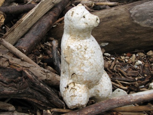 This sand lion is hardly fearsome with its child friendly smile. I later found another animal object on the driftwood. It’s a bear with a twist having been formed with polystyrene foam. This was premade and I didn’t have to do anything else with it except to take its picture for my collection.