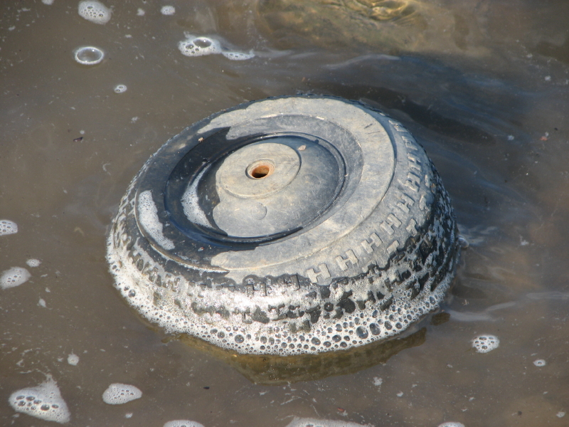 Amazing images Al! The tyre looks like a dead fish eye staring out of the water:) My favorites are the crouching sand lion and the styrofoam bear, though the brown decorative container which looks like an amonite and the orange/brown patterned one which looks like a sea urchin come a close second!