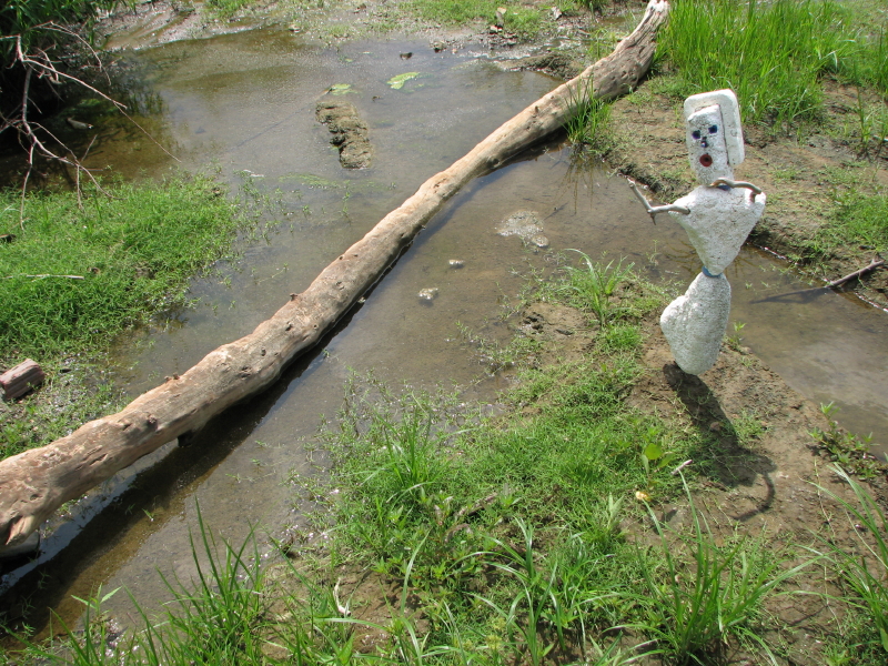Take for instance this experience he had walking along the river’s edge in the western section of the park. Passing herons stalking fish in the shallows, the Adventurer could see something obviously man-made jutting out of the riverbank and into the water and he moved closer to see what it was. It kept getting bigger and bigger the nearer he came to it.