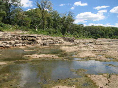 Don’t worry about me…I’m alright. I just hung out here so long and the summer was so hot…that the river dried up around me. I found this spot on the riverbank that I like that always seems cool even during the most scorching days. I also liked looking at all these shades of green in the algae.