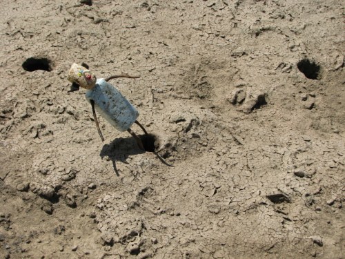 For the moment, I’m at a standstill and will need to be open to what nature has in mind. I know a new adventure is just around the corner from here and it will be worth the wait. In the meantime, maybe it would be a good idea to work on my raft? From this angle it looks rickety. I’ll search the riverbank, maybe I’ll find a life vest too. I have found them before! When the river comes back I’ll be ready.