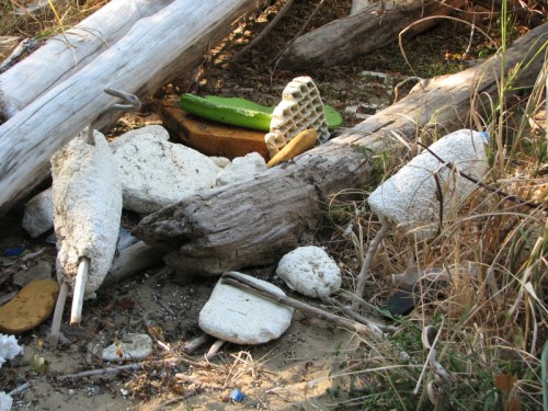 Had I come across your work area and there was no sign saying I could take one home, I would not have bothered the area but been amazed at the creativity that had taken place, there. You mention young boys as perhaps the culprit? I would have thought a group of aspiring young boys might have spent some creative time learning and creating these from artifacts found riverside. Interesting contrast; what we would hope the youth of today was doing and what they are actually doing.