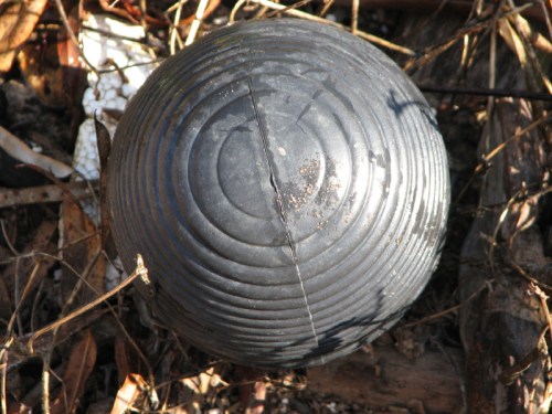 On my last walk at the Falls of the Ohio I came across so many found round objects that I thought a few photos of them might be fun or interesting so what the heck. I’ll start with the first orb I came across which was an osage orange fruit also called a hedge-apple around here. It looks somewhat brain-like because of its texture. There are also a few genuine and fake baseballs in various states of decomposition thrown in for good measure. I also found another plastic orange…that one will go into the Fake Fruits and Veggies Collection which keeps growing with each trip to the river. The day began cool and frosty, but warmed up with some sunshine after noon. Alright now and without further delay, here are the photographs.