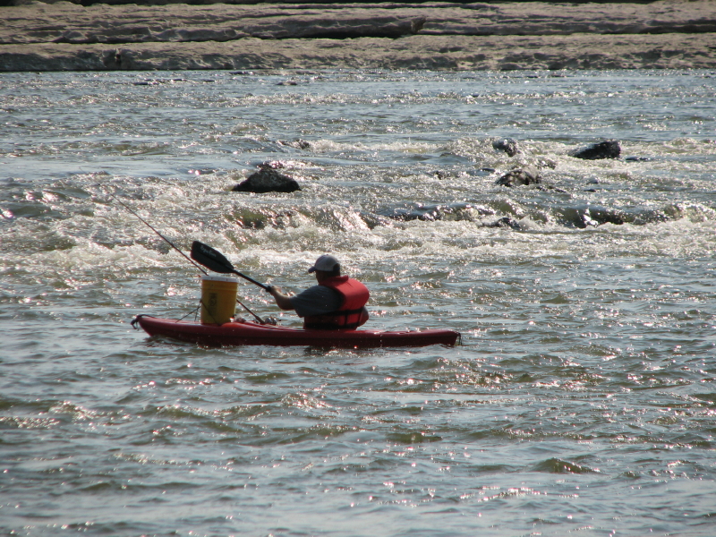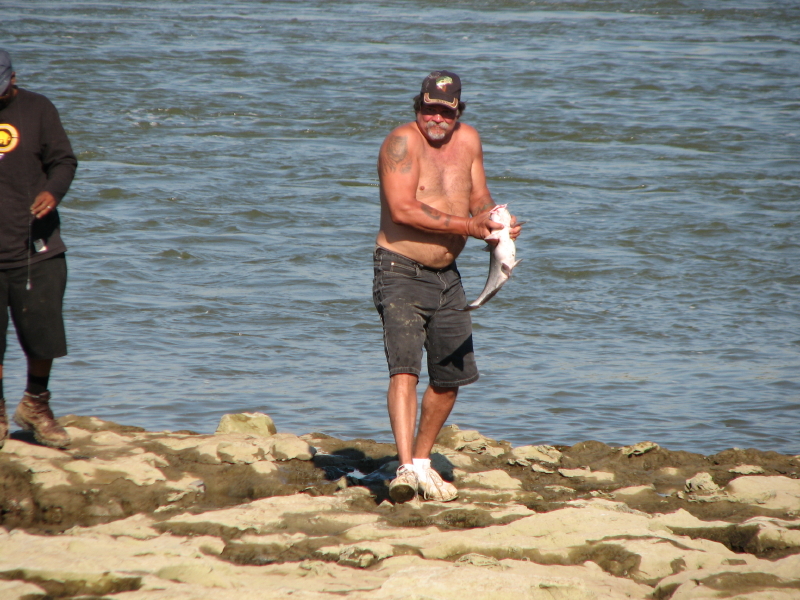 I can remember the look of delight on this man’s face when he had the fish in hand. What worries me is that I’m seeing more and more people taking fish out of here to eat. Although the river is supposedly getting cleaner, there are still toxins concentrated in the fish’s tissues. It’s still a good idea not to eat too many too frequently. And, the bigger the fish, the more likely more toxins will be present in the fish. Some folks will go to some lengths to reach the fish that others can’t reach. It certainly helps to have a boat.