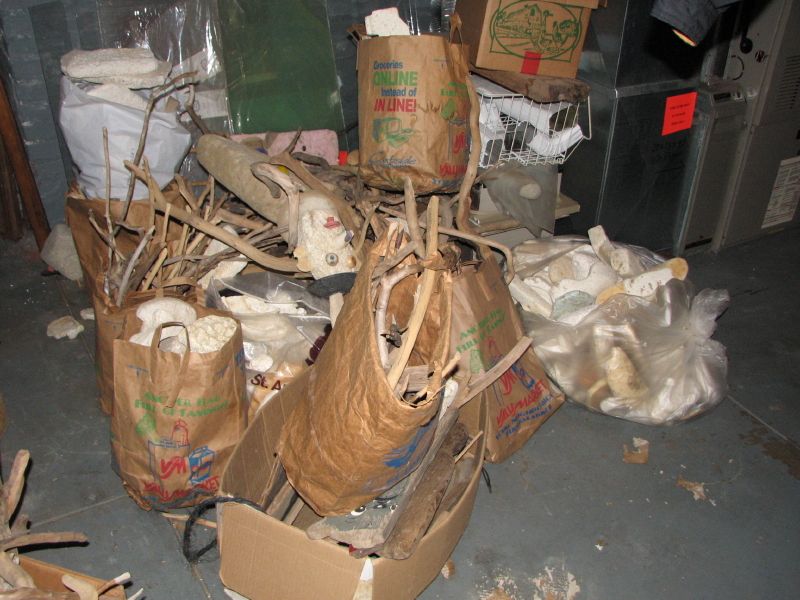 I removed the little figure hiding among the fibers and put him in my collecting bag. I will reassemble him once I get home and perhaps make a gift of him to somebody. The shredded barge cable I also took along, but I had a different purpose for this…it would become a wig for Big Red.