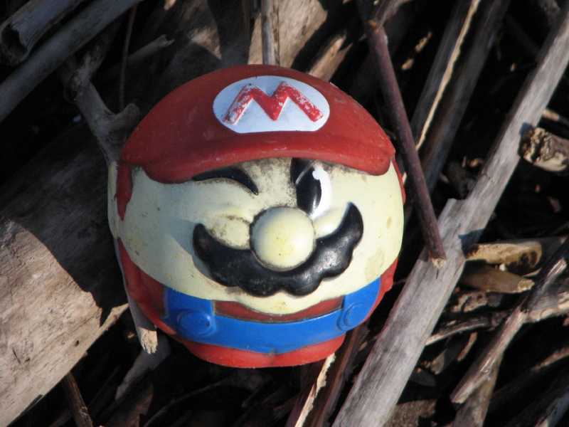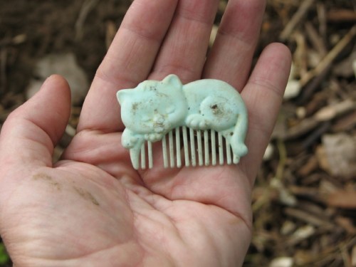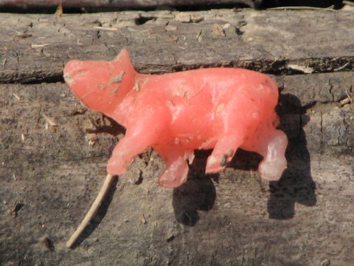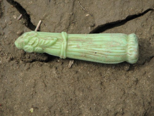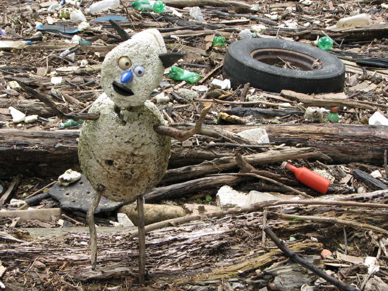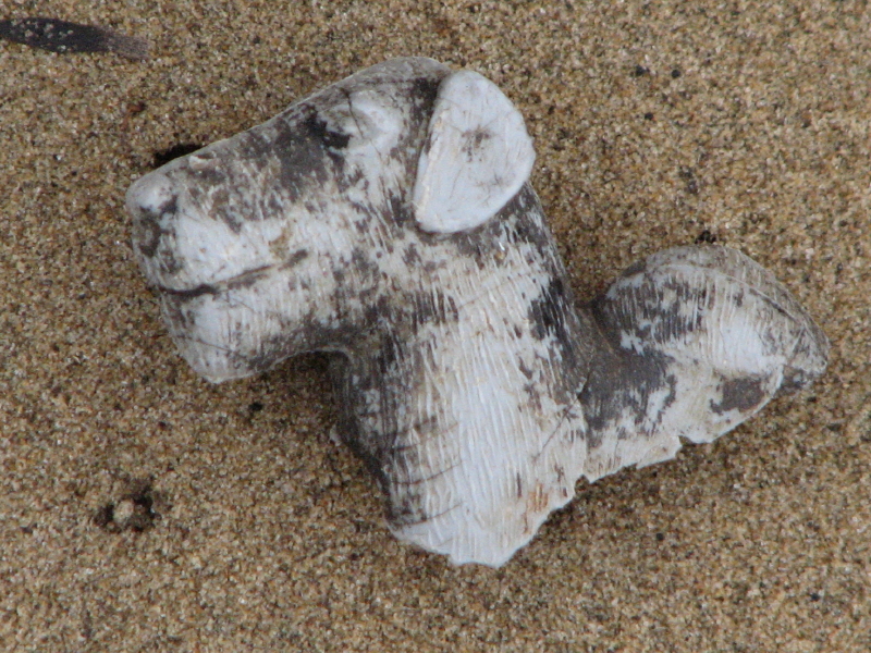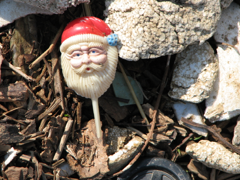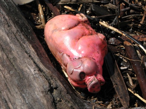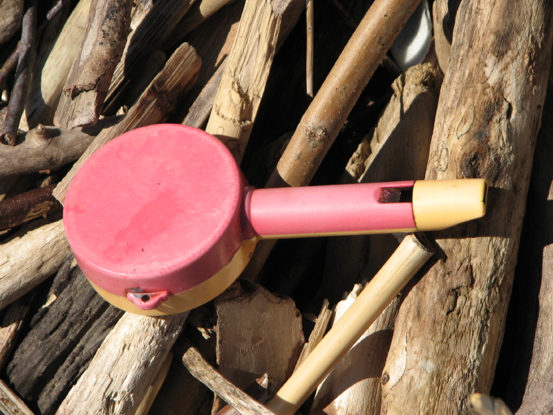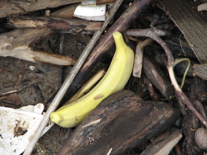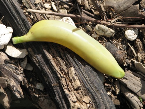 I like the hand-routed and painted “sign” for a person. I think this fragment may originally have asked dog owners to leash their pets…but its shy and won’t tell me for certain. Other found treasures included my second banana of the season…naturally it went into the old collecting bag to later join the other artificial produce I have found out here over time.