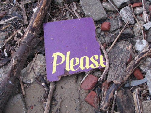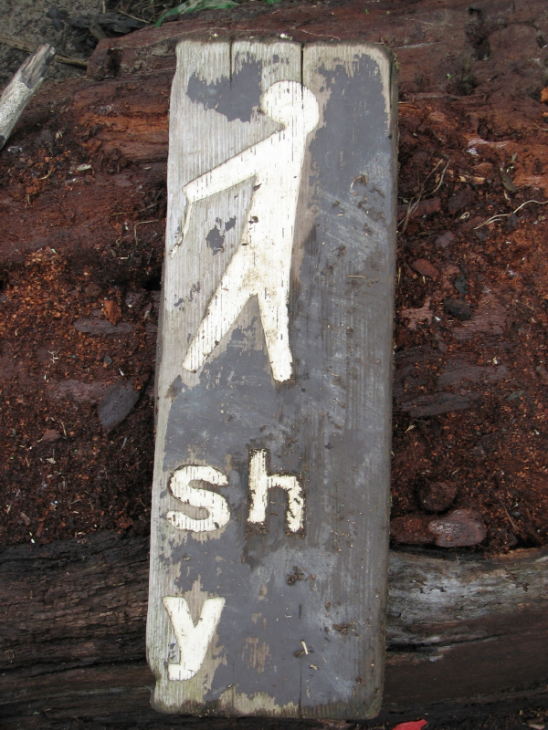 I’m not sure what it is asking…Please don’t litter or Please, only you can prevent forest fires, whatever its actual message, this is at least a polite sign. The other one is more reclusive, in fact it is “shy”. Here’s a picture of this enigmatic sign.