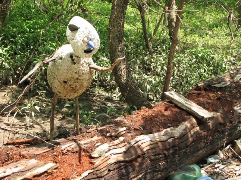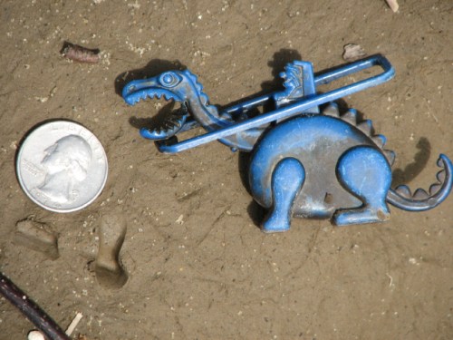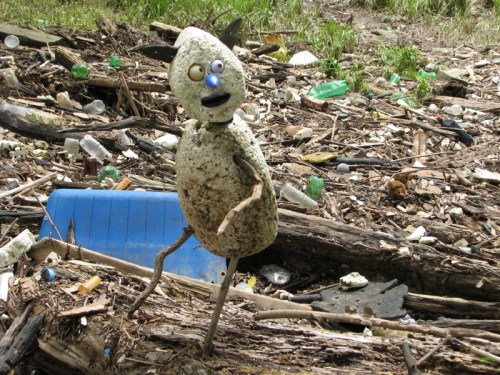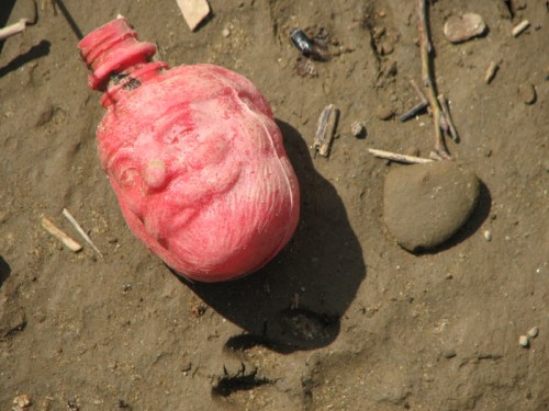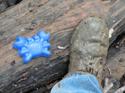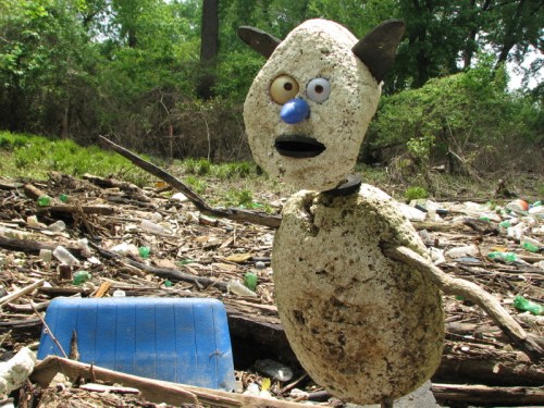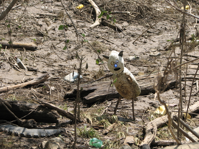 While exploring the park it is not unusual to run into others who are curious to see what the river has left behind. Sometimes just a nod of recognition and some small gesture to reassure that one poses no threat is made and each party then attends to their own business. And then sometimes a more sustained conversation occurs where information of mutual interest is exchanged. Such was the case on this trip where I ran into this fellow of short stature with a bulbous blue nose who had been investigating the same stretch of river as me. We tagged along with one another for a short time before family duties called me home. I believe our initial conversation had something to do with the muddiness of the area. In places, things looked safe and dry enough to stand on…and then the mud below would reach up and grab you by the ankles. Sometimes small, blue crabs would pop out of their holes to check out whether the trapped parties would be good to eat.