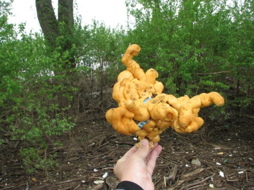 I also find other kinds of foam out here. Here’s an interesting found sculpture made from polyurethane. I have come across busted aerosol cans of this stuff where the foam has expanded out resembling entrails.