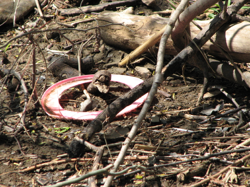 I might have missed this next one if it hadn’t been for the color. I believe it’s a toy meant to be thrown. It flew into the river and here it landed.