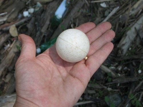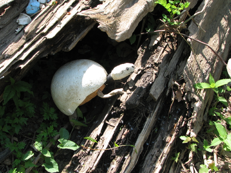 Although I may have fooled some people out there (wink, wink)…the Cottonwood Turtle doesn’t actually exist! I made it from junk I found here in this very real environment at the Falls of the Ohio. The shell or carapace is the cushioning from inside an old bicycle or motorcycle helmet and I have found several of these helmets after the last flood.