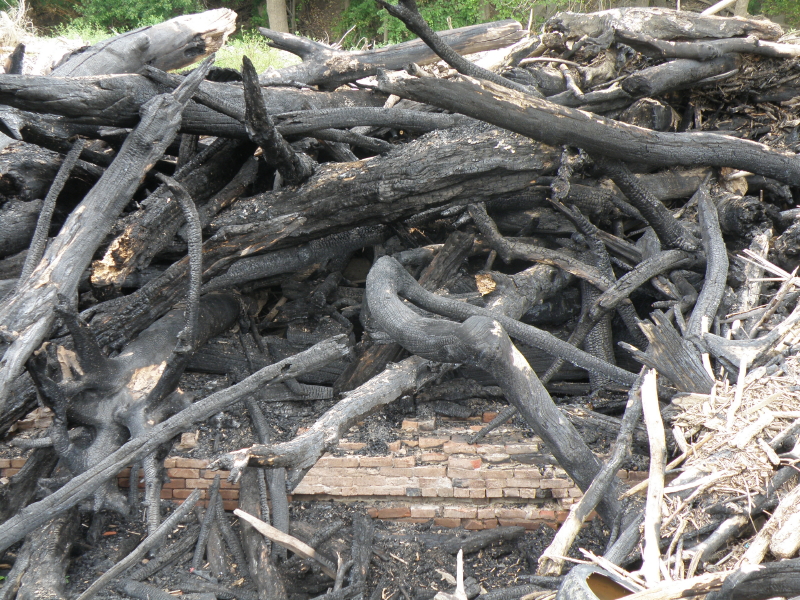 I don’t know what started the fire…it could have been set by man or it could have been a lightning strike. The latter part of our summer has been dry. The fire was quick and essentially burned the surface of most of the larger logs out here as black as coal. I noticed that part of this raft of wood snagged next to this brick foundation of a building that has been a wreck as long as I have been coming out here which is over twenty years now. I don’t know what this building was originally used for and I wonder if this could have been some person’s house once upon a time? That might not be right since this area is prone to flooding nearly every year.