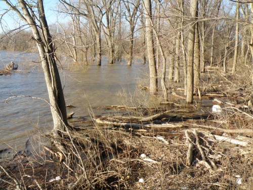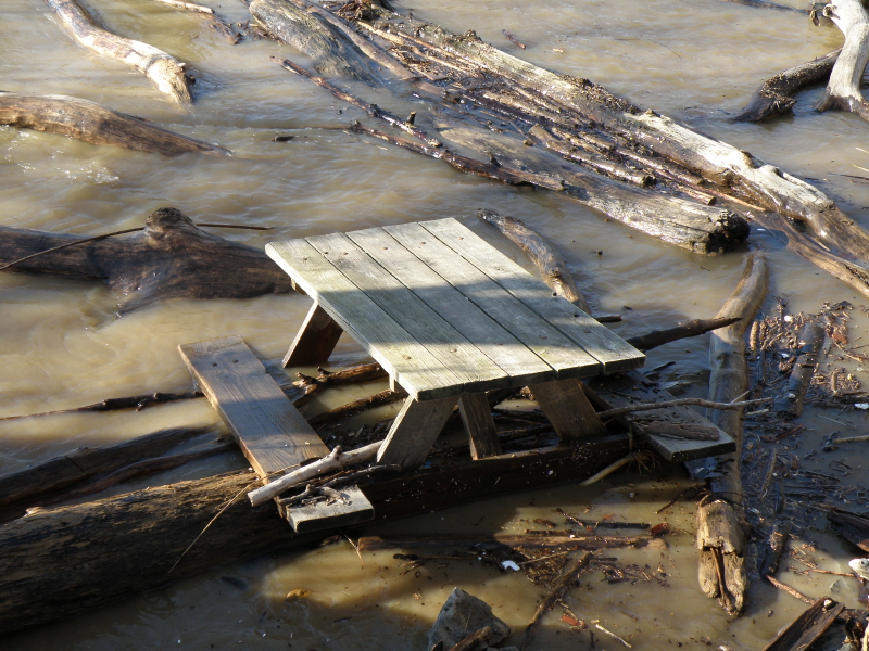 I came across this picnic table near the Interpretive Center. The river is now enjoying what is normally a cozy place to share a few sandwiches. I wonder if this table eventually floated off? I kept walking along the retreating shoreline being mindful not to step into the ever creeping waters.