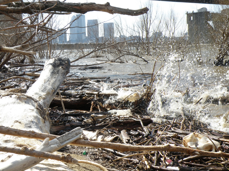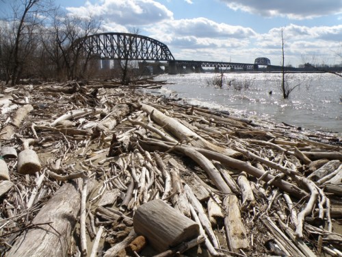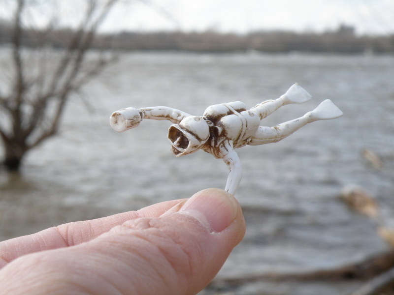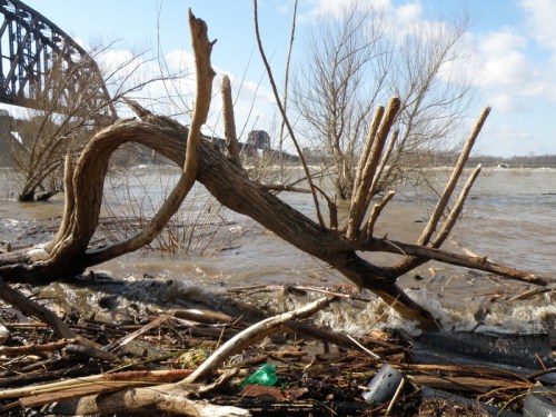 On a variable day where the sun played hide and seek among the clouds, I visited the Falls of the Ohio to see what there was to see and experience. Thus far, Spring is shaping up to be much warmer than normal and many different plants in the city where I live have flowered early. I was curious to see if this pattern was holding true with the trees out by the river? Upon arrival, I could see that the trees hadn’t “leafed-out” and so I directed my attentions to a slightly high and wild river. I began looking for river treasures when I met this strange fellow.