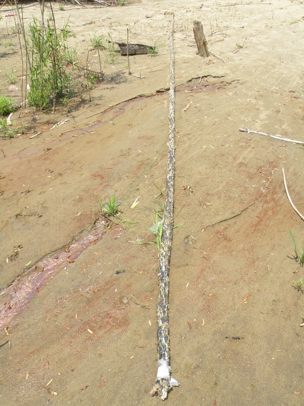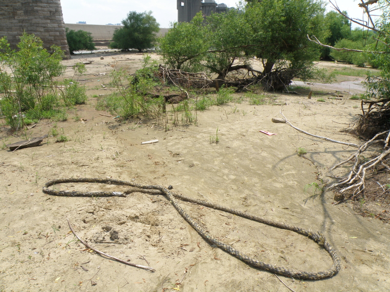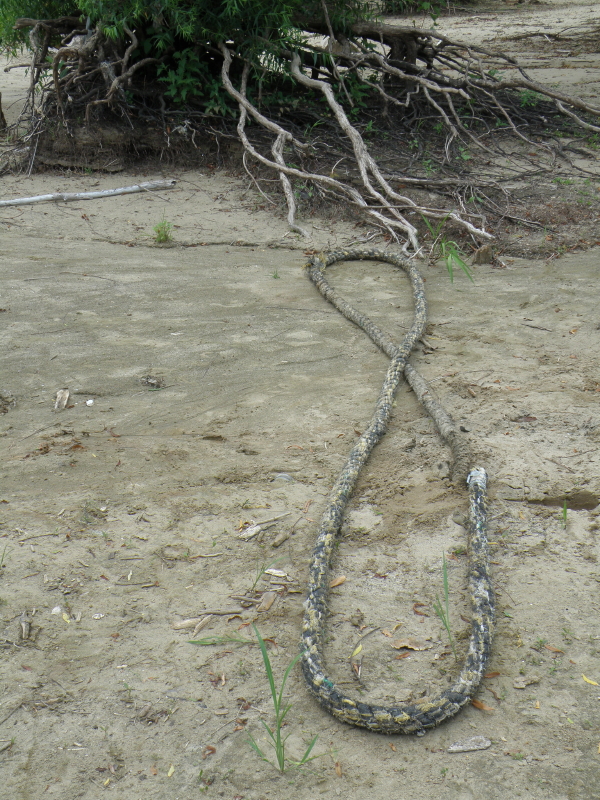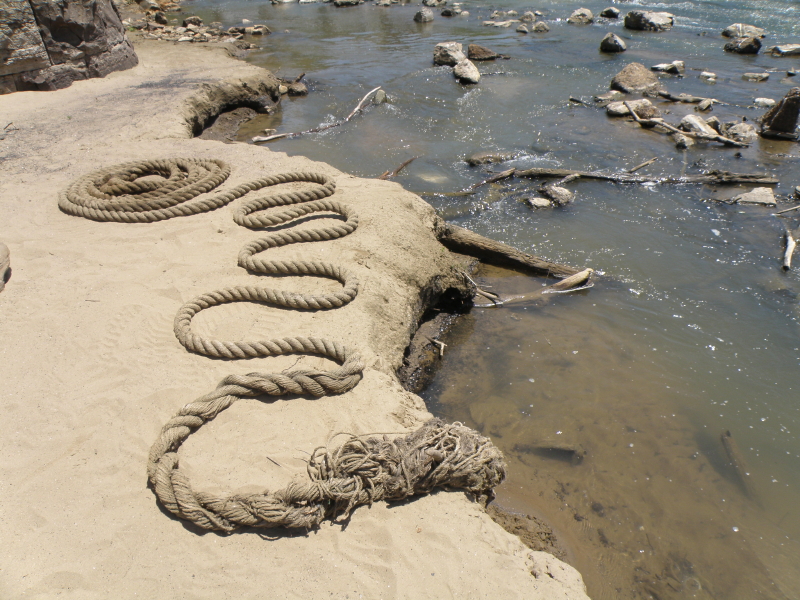 Last view with the unraveling end draped over a log. This is the position I left the rope in before departing for home. I very nearly took this rope home with me, but it was too big and heavy and the heat of the day took its toll on me. At the time, I told myself that if this rope was still here the next time I returned that I would collect this object for later use. Nebulously, I had this idea in my head for another installation project. Just what I need…more junk!