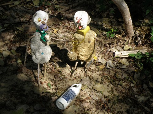 After a short rest, my hosts were in a mood for a walk and I tagged along. I could tell that there were things they wanted me to see. Of course, they showed me just about every piece of litter we came across on the trail. It seemed important to them that I not miss this.