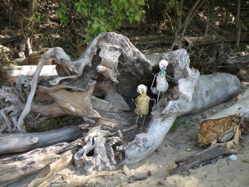After the marsh, my companion climbed a long log that had washed up on the shore during a flood many years before. He climbed as far up the root mass as he could and lifted his voice and fork to the heavens. I wish I knew what he was saying…but whatever comprised his song I could tell it was reverential.