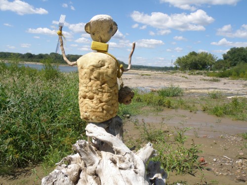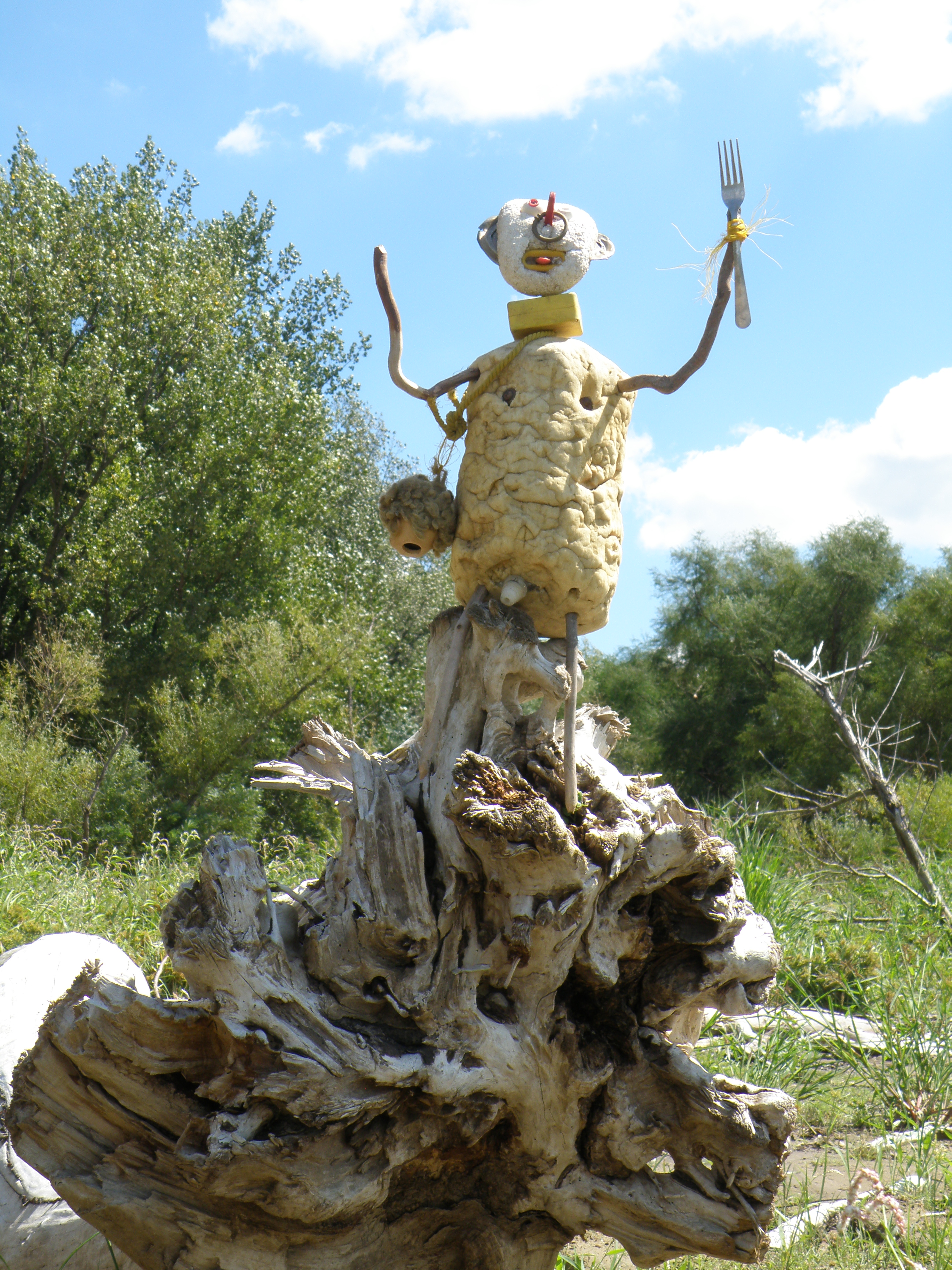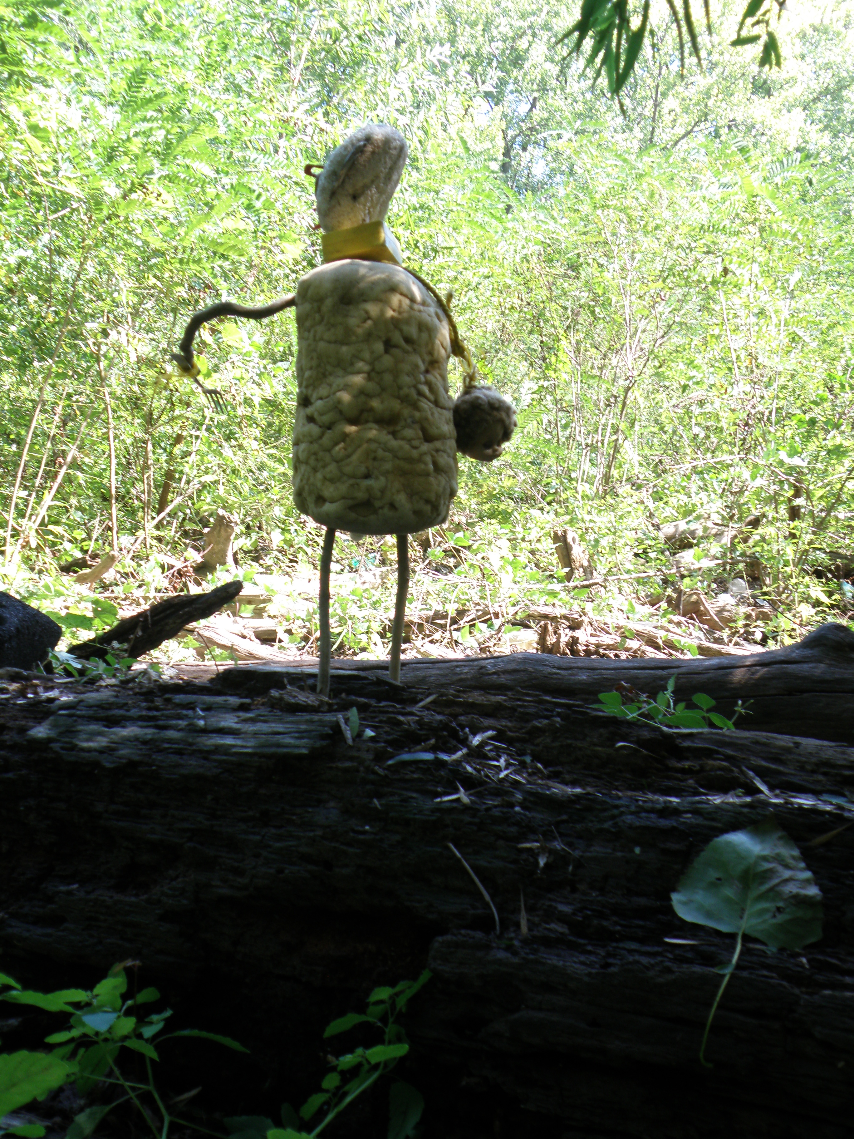 Summer has transitioned to fall. Everyone has noticed that the days don’t seem to be as long as they were a mere month ago. This is all the more reason to get out into nature. Perhaps you have felt that subconscious pull tugging you out the door? The sun is not as insanely hot and the light is intense and clean. There is just the barest yellowing along the margins of the river’s cottonwood leaves. More colors will follow. Right now there is an urgent purposefulness to the world as life prepares to overwinter. The flowering grasses are alive with flying insects gathering pollen and nectar. Spider predators are behind every leaf. After absorbing some of this energy…I headed up to my spot under the willow trees and wondered about making something interesting from my river cache. I was so happy and absorbed to be back at my outdoor studio that for a moment I lost track of the fact that something was now moving on the left side of my peripheral vision. Thinking it might be an animal, I carefully brought my camera up to take some quick pictures and this was what I captured.