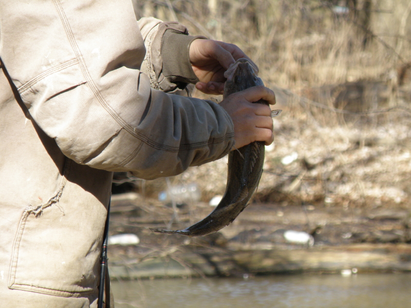 These fishermen were casting small, bright green and yellow, soft-bodied, tailed jigs into the creek and having amazing success. All of them were catching Sauger which is a member of the Perch family and smaller cousin to the Walleye.