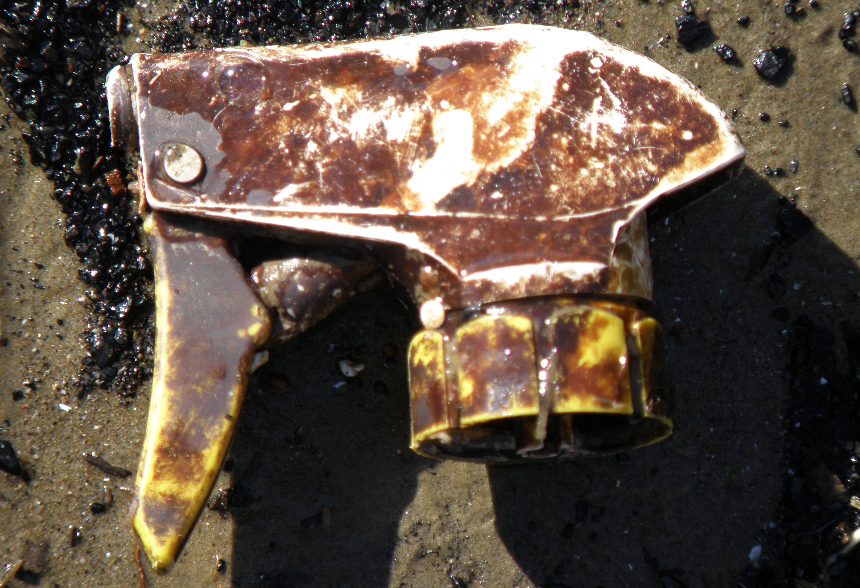 The range of plastic refuse one encounters at the Falls of the Ohio State Park is both numbing (it’s obviously trash and shouldn’t be here) and morbidly fascinating (the design sensibility and colors ) catches one’s eye and occupies the mind. Consider the variations in something as mundane as “spray bottle triggers” if indeed this is what you call these things? I’m not sure when I started noticing these objects and photographing them…but here they are. Each adventure to the river is sure to garner multiple images and story lines that I sift through at my leisure. Consider this a personal cleansing of the spray bottle trigger palette. Ironically, much thought went into designing each of these beauties to facilitate dispersal of their contents from plastic bottles. I like the rotating tips that give me options such as “spray” or “stream” and so forth. These triggers are ingenious and they do their jobs well. Without further adieu and fanfare…here are more images from an admittedly odd collection.