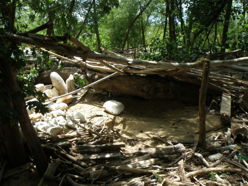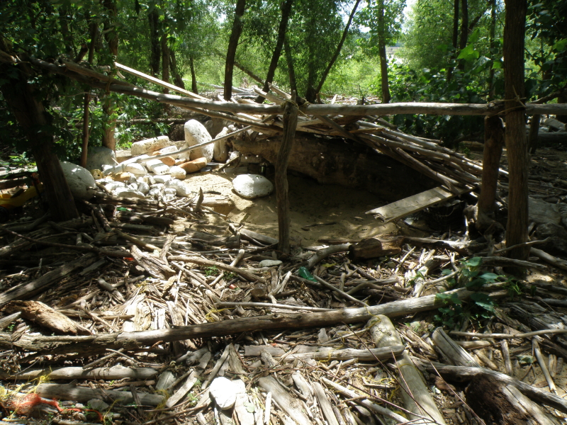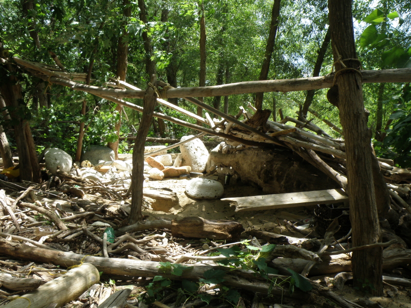 I have used this spot to cache river found materials and to make my sculptures and this has been a handy base of operations for a couple of years now. This spot has weathered a few near miss floods that could have washed everything away again, but has stayed remarkably intact. Well…there were a few recent changes which form the true subject of this post and here are the pictures.