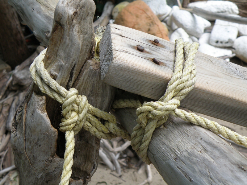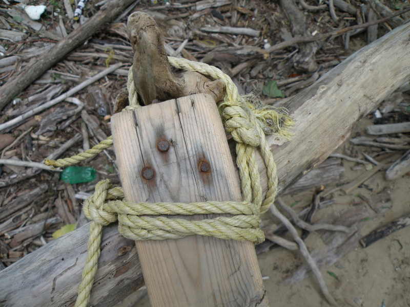 It was an already dramatic day in terms of the weather. Bright sunshine alternated between heavy, dark clouds dumping rain showers along the way. The clarity of the air and the mosquitoes were noteworthy. I did get soaked on this adventure, but as long as the camera stays dry…I’m alright with it all. Imagine my surprise upon arriving at my site to find that someone anonymously had built a structure around it! I’m used to folks going through the junk I’ve scavenged and taking or destroying whatever creations I may have left behind, but this is a first! A great deal of care was used in working with the existing site by utilizing the surrounding trees and logs as posts and beams. I wonder if this is also the work of more than one person? This is more than a flimsy lean-to where the wood is simply stacked. Some craftsmanship is evident from the knots used to hold the structure together. It might take more than one person to steady things as another does the tying? Again, more pictures to illustrate the story.