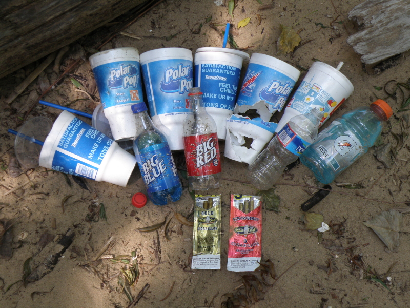 I thought the “Big Red” with the “Big Blue” was an interesting touch. In our area, those are the home colors of rival universities. Another giant Styrofoam cup joined the group and I have my suspicions that the cigar packaging is from the same individual as well? I think this is what saddens me the most that all this convenient store trash would be walked to this site and simply thrown on the ground. As much trash that appears here from upriver, I’m shocked by how much park garbage originates from the nearby towns. And yes, there are trash cans available everywhere. I sat by my site for a while and pondered the situation. I wondered why with all the space and driftwood available in the park that this spot became so important to my visitor? Feeling like this individual more than likely doesn’t play well with others…I decided to walk away from this site for a few weeks or months before returning. So far, I haven’t been back to my old spot under the willows.