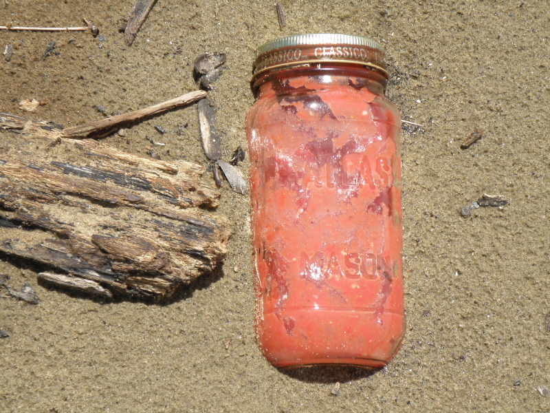 Would you believe me if I told you this is not the first jar of pasta sauce found out here? Because it is relatively easy to prepare…I’m assuming that spaghetti is among the more popular dishes among folks who like to recreate around the river? Over the years, I have also found jars of pickles, condiments, soup, and one very large, memorable jar of bologna.