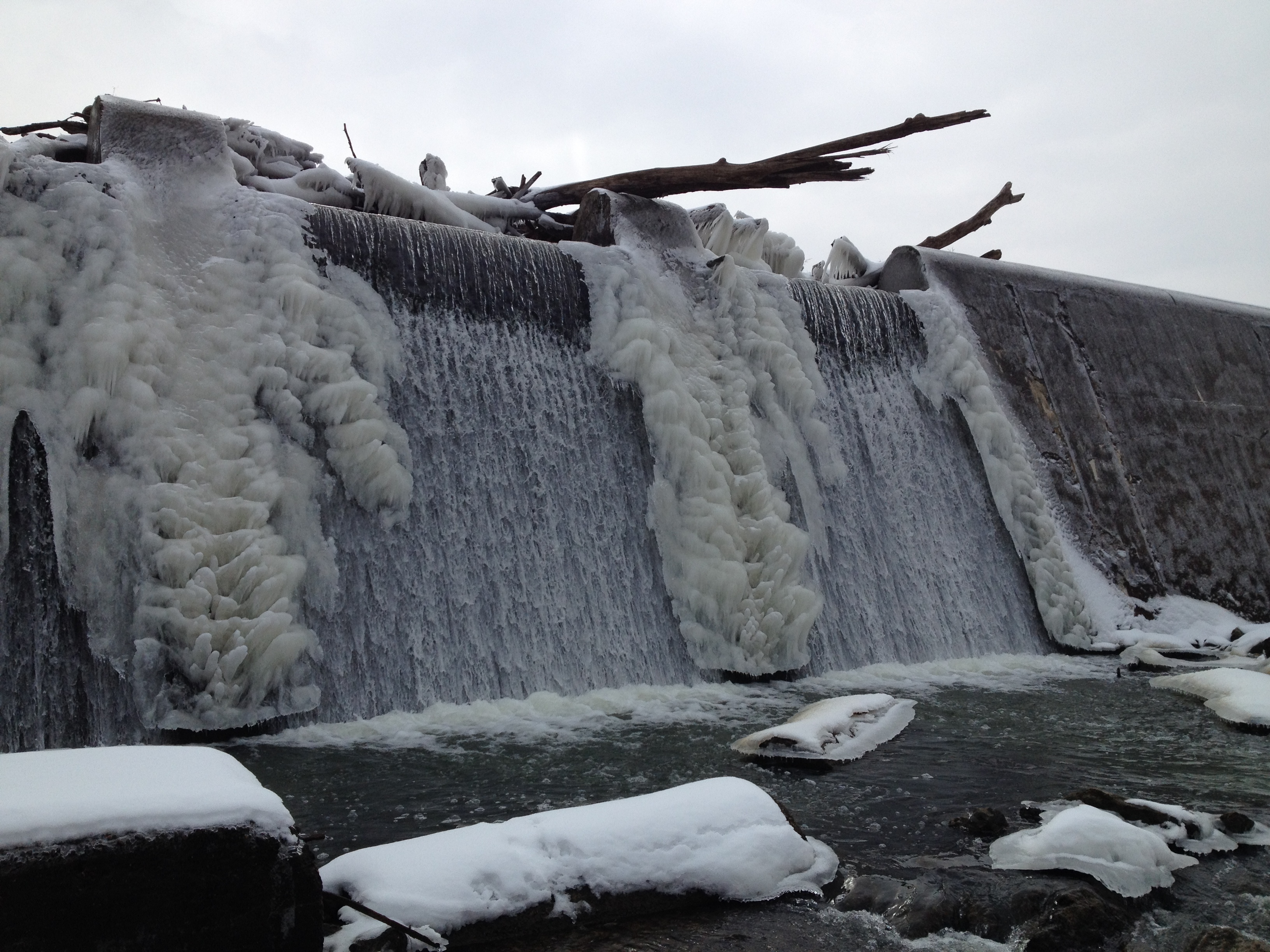 I wondered if the Polar Beaver could appreciate the varieties of shapes and forms that frozen water can take? In the background, the Ohio River seemingly “smoked” as the surrounding air is much colder than the water. This vapor or steam gradually coats the structures nearest the river. As the condensation freezes it creates the many shapes that I like to describe as ribbons, sausages, and candles in this beautiful wonderland. During these special moments, one can appreciate water as it exists in three different states of matter…gaseous vapor, flowing liquid, and rock solid.
