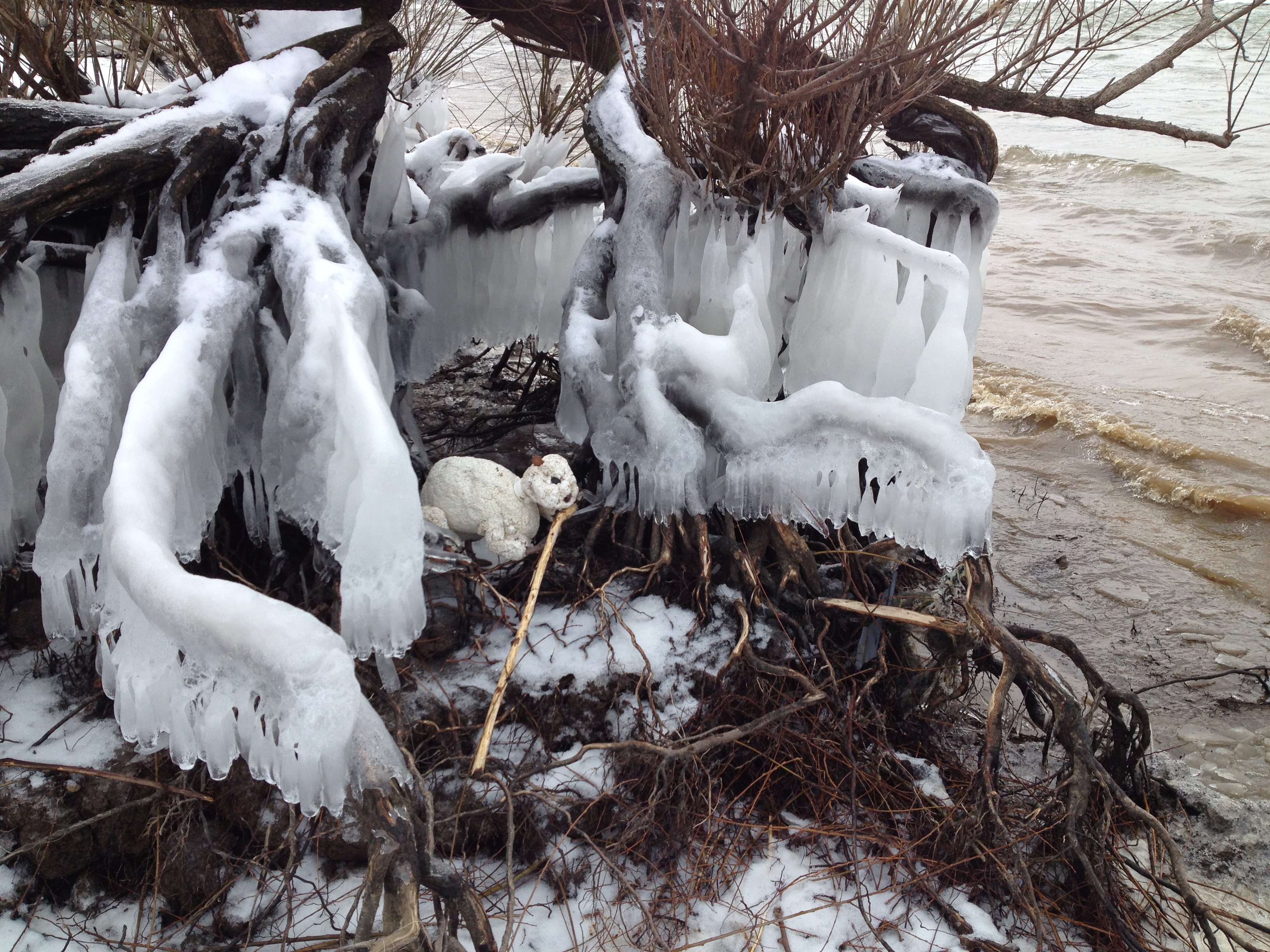 And just when we thought we were winter-proof…the cold descended. Literally, one day it was near 60 degrees and a few days later came the snow, ice, and record-breaking cold. Although it has been a mostly mild winter in the Kentuckiana area…it has also seemed like a longer than necessary season. Everyone I know is winter weary. Cabin fever has me out venturing among the frozen willow trees at the Falls of the Ohio State Park. From winter’s past, I know that when conditions are just right, I can expect to see some interesting ice formations near the river.