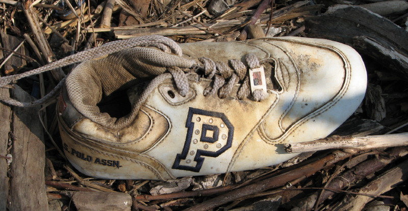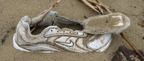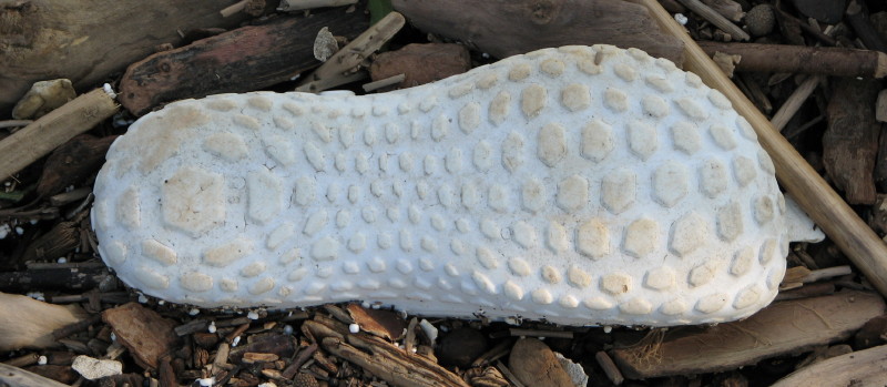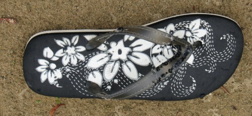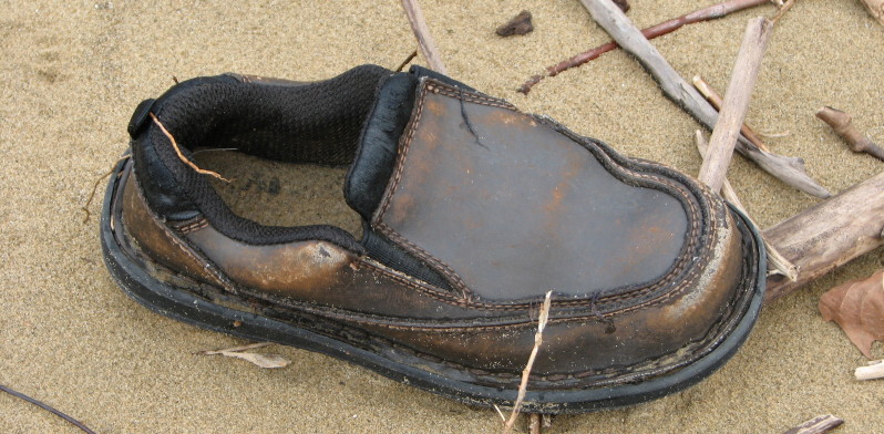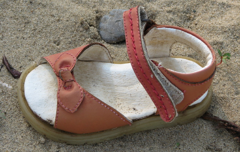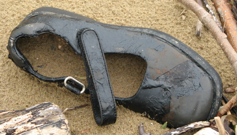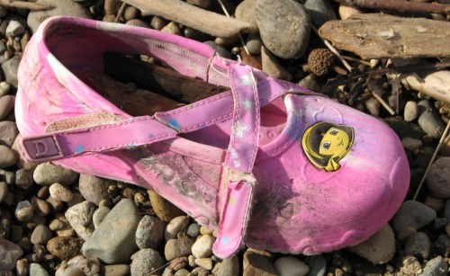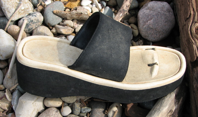 Most of these shoes look in fairly good condition – like they will last forever (bad). I wonder how they end up in the river? do people dump pairs in or just lose one? My favorite is the slipper from the other page and the pink ballet type shoe. I really enjoy looking at these collections Al:)
