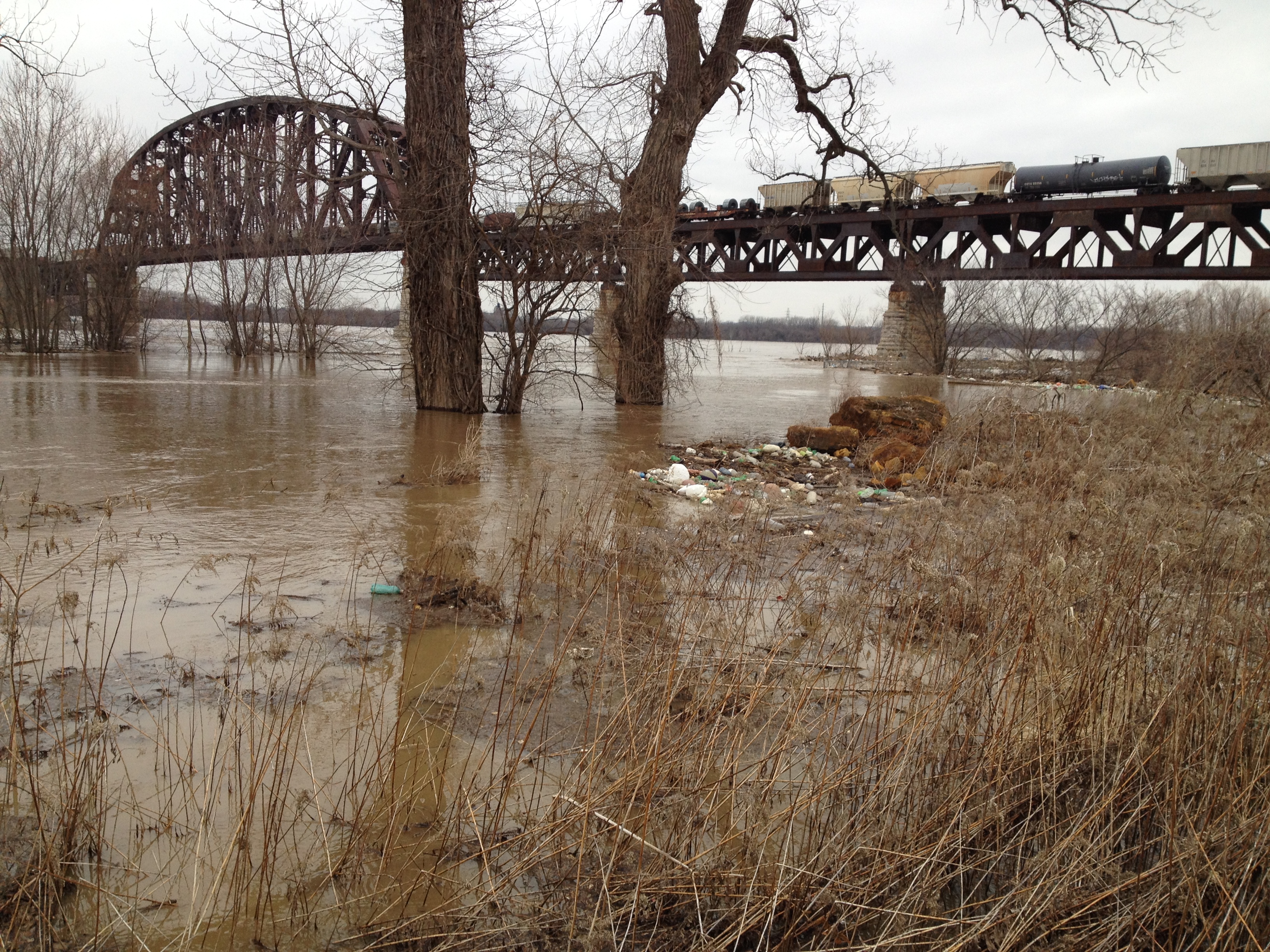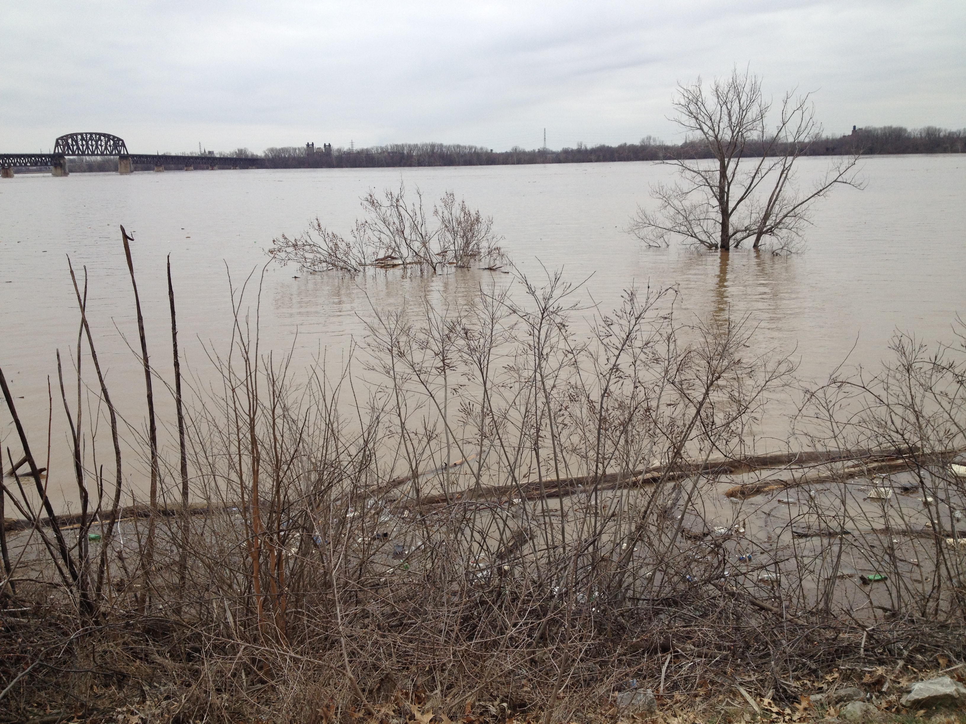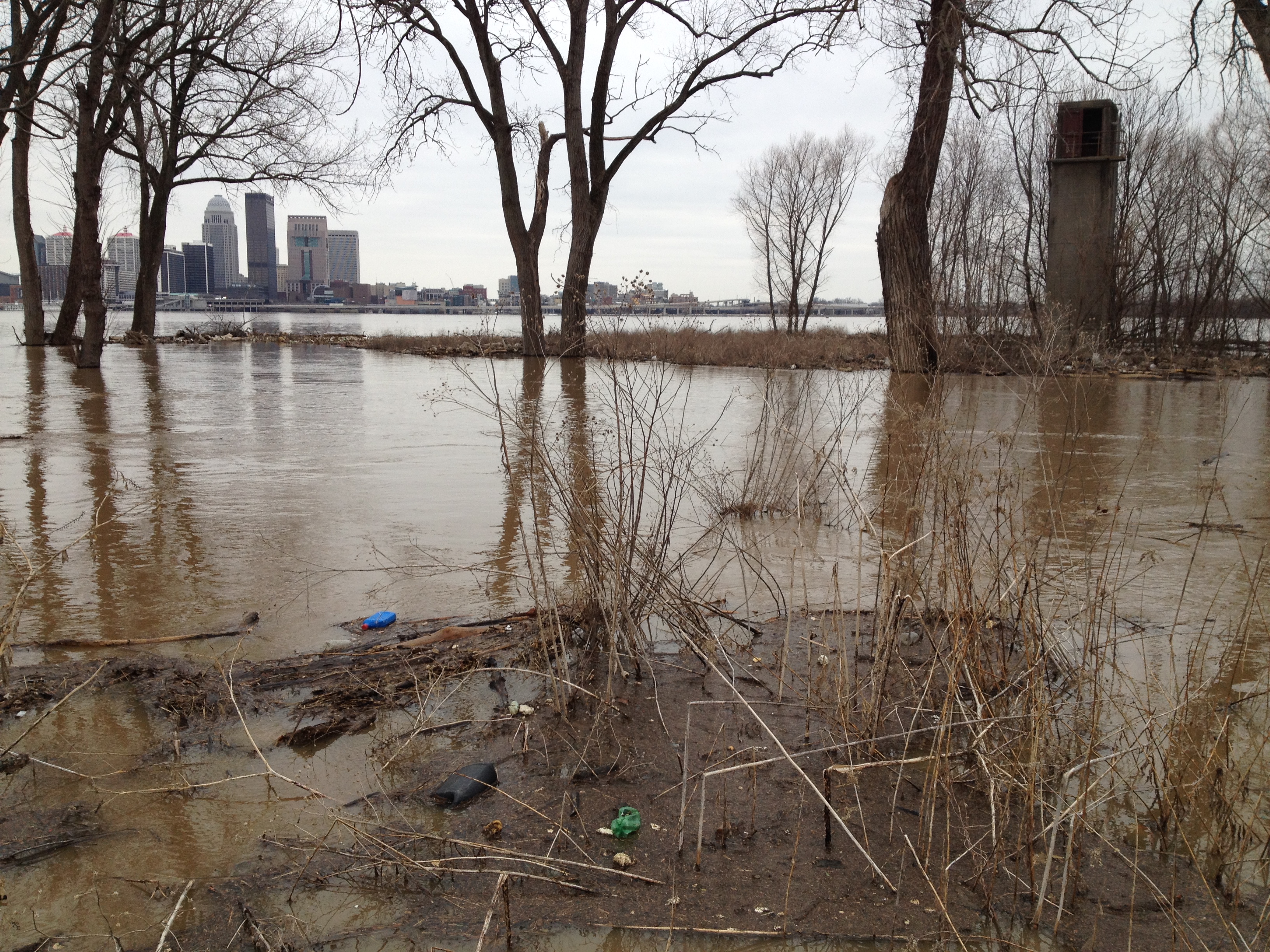 Getting into the right spirit of the season can be difficult for some folks. Especially, when the weather is abnormally warm and you were hoping for snow to get winter kick started in the right direction. The Falls of the Ohio, like much of the eastern portion of our country, is currently in the grips of El Nino. Our area has set several all-time records for heat for this time of year. What a contrast from last year’s polar vortex! As luck would have it, the Styro-Snowman happened to be around when I was visiting the river. I stuck around to see what would happen next.