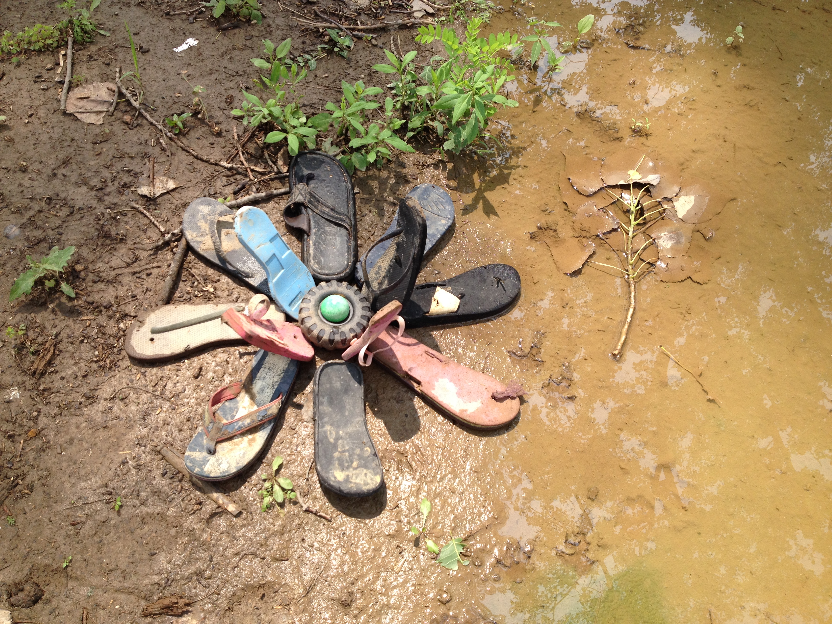 Along with the snowflake star…a small white sack appeared on the ground. Inside the sack were five, slightly beat up plastic tree ornaments like the kind you can sometimes find at the Falls after the flooding has subsided. The snowman looked into the sack a pulled out a roughed up, but still functional, deep red ornament. His expression widened and I almost felt like I was reading his mind. The snowman walked over to one of the four trees with the great roots and began decorating its branches.