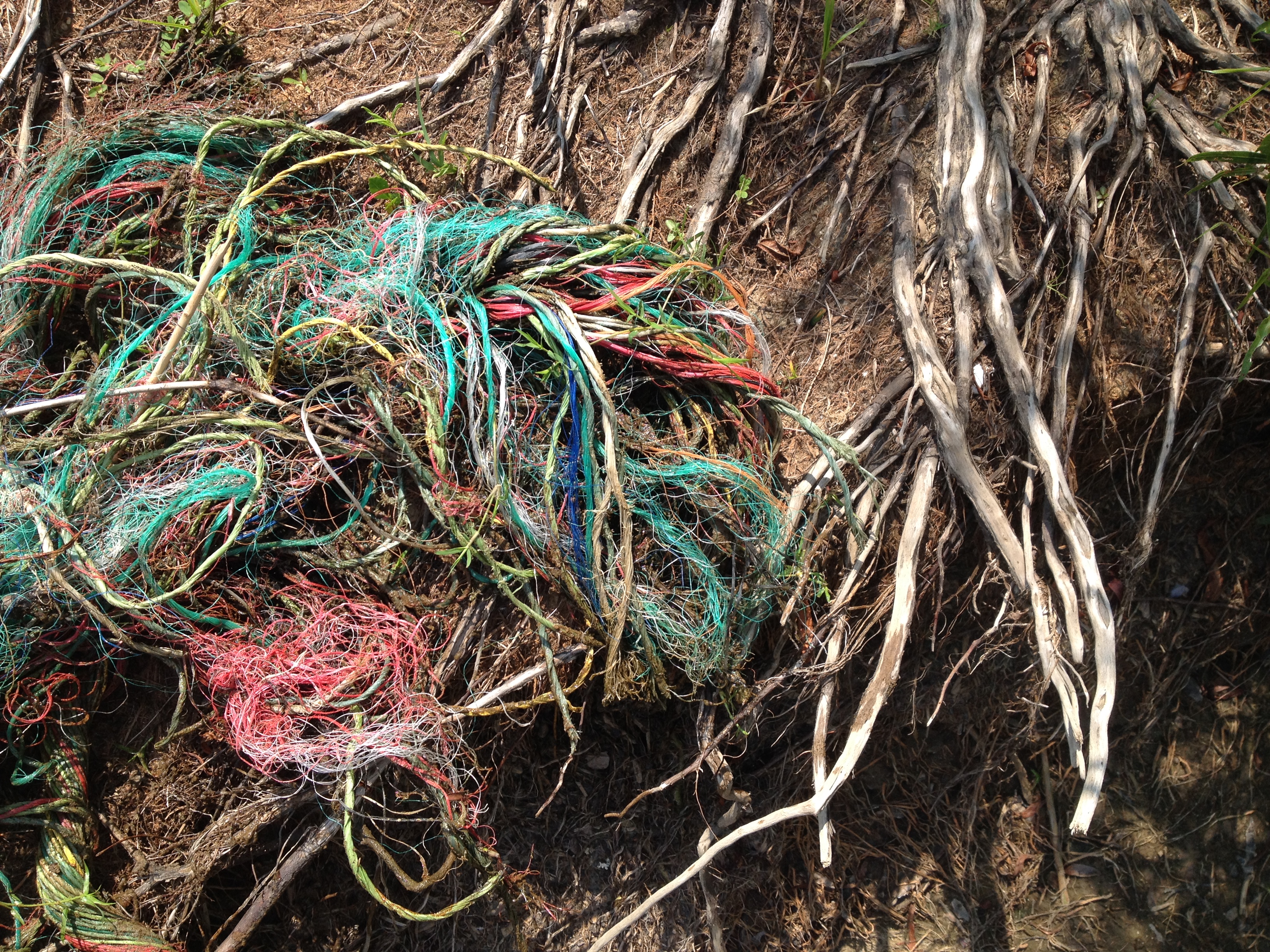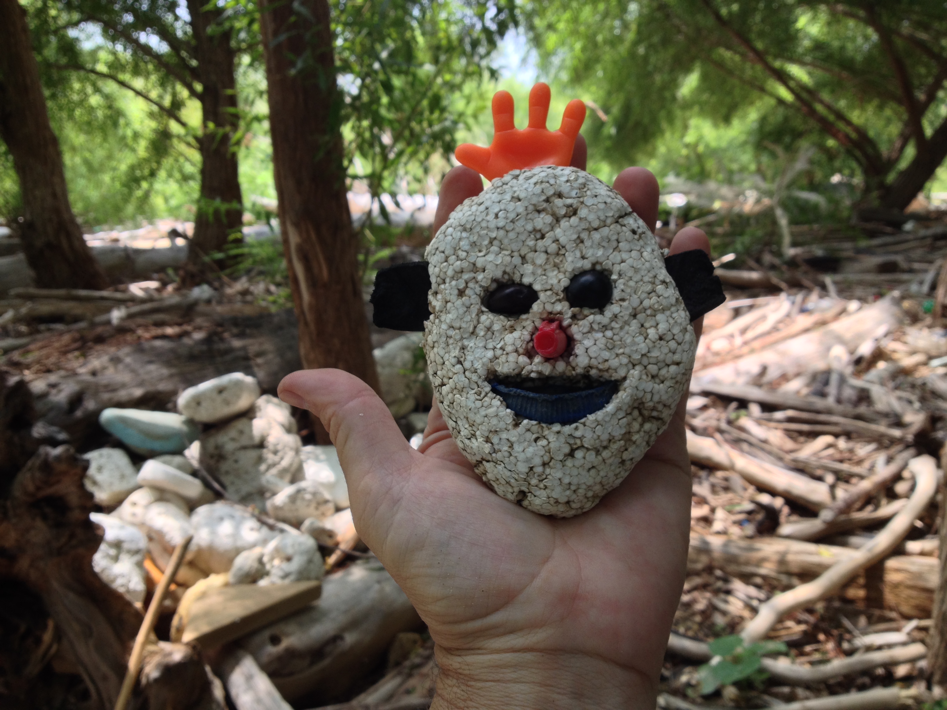 Katinka said she detected a theme developing and that she had witnessed other “unusual pairings”. She asked me to hold out my hand and on my palm, Katinka placed the soft, hollow, plastic body of a toy animal that was missing its head. She found this on the riverbank too. Interestingly, nature seems to find a way to express life and in this case, a small seed landed in the dirt that had filled the toy’s hollow body and had sprouted! This qualifies as a very small niche indeed.