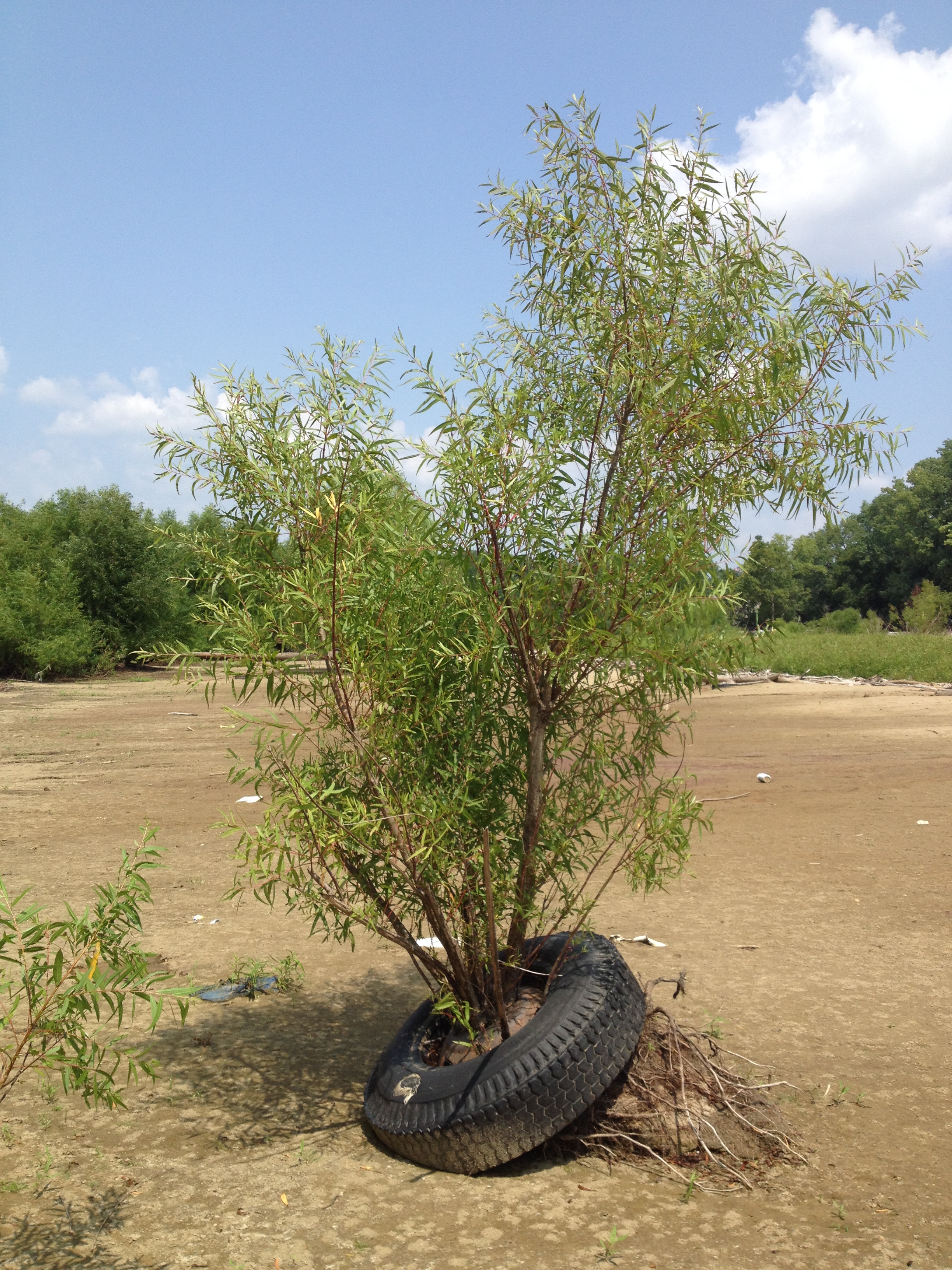 I have documented this tree through a few seasons and so this was a good time to take a few early summer shots. The tree seemed healthy and was certainly taller than before. I noticed that after this year’s high water subsided, that the tree had shifted a bit as the tire settled into the earth. Linking the tire with the tree is an unusual union of the natural and artificial and Katinka agreed. She said that she couldn’t help but feel that the tree got the worst end of this bargain…but we shall see.
