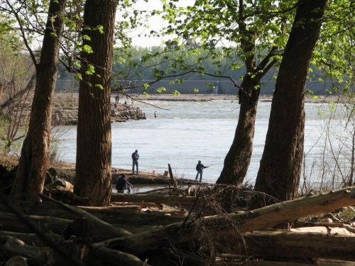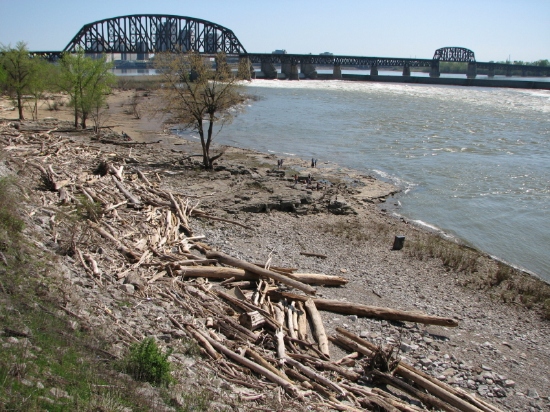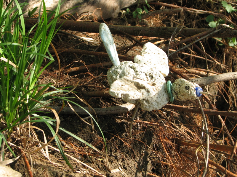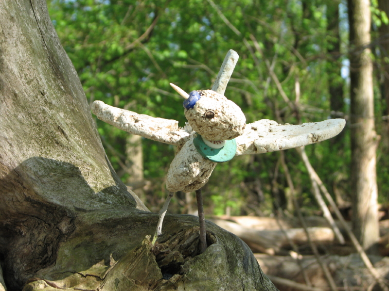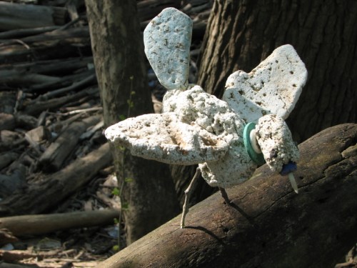 After delivering some of my artworks to an exhibit in La Grange, (more on that in a future post) I stopped by the Falls for a quick look-see. It was an absolutely gorgeous day and I decided to take a quick walk along the Woodland Trail to see if any of the spring migratory birds were in the area. I was amazed to see the sizes of some of the trees that washed into the park during the last high water. From my vantage point, I could see several “nice” pieces of Styrofoam that were also stranded by the retreating river. I made mental notes to myself to come back to those areas when I had more time. Images of future sculptures came to mind.